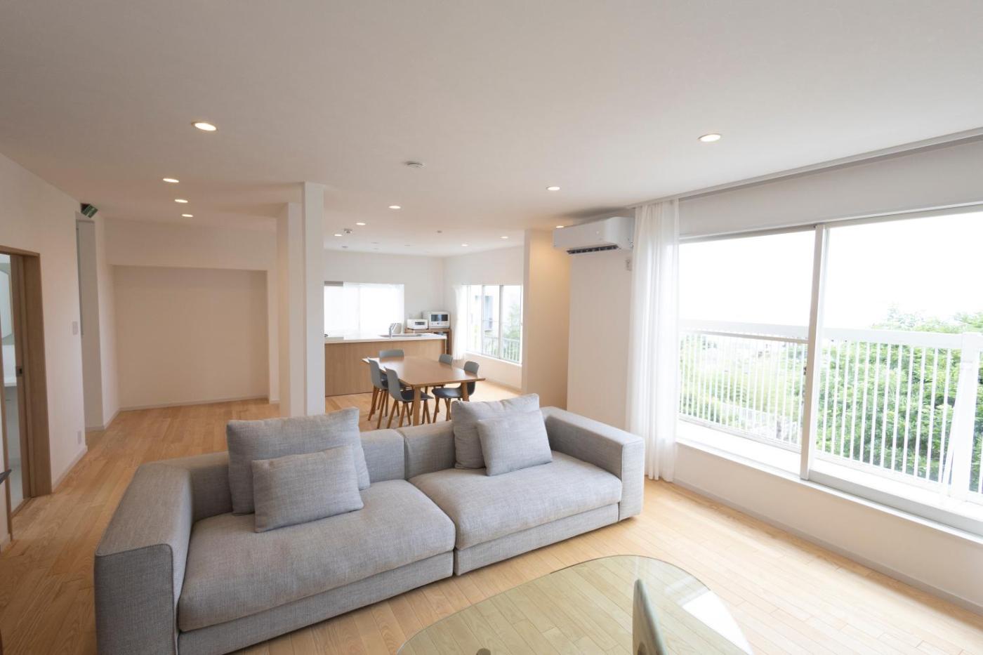 Two-Bedroom House. The spacious holiday home features 2 bedrooms and 1 bathroom with a bath and free toiletries. In the well-fitted kitchen, guests will find a stovetop, a refrigerator, an oven and a microwave. The air-conditioned holiday home provides a flat-screen TV, a washing machine, tatami, a dining area as well as sea views. The unit offers 3 beds and 4 futons.