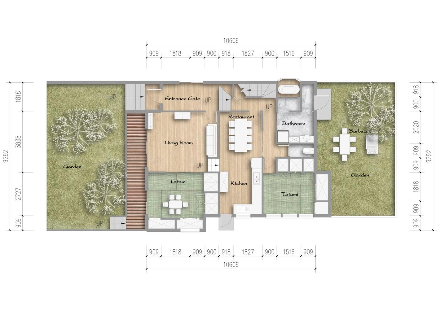 Four-Bedroom House. Boasting a private entrance, this air-conditioned holiday home features 1 living room, 4 separate bedrooms and 2 bathrooms with a bath and a shower. Meals can be prepared in the well-fitted kitchen, which features a stovetop, a refrigerator, kitchenware and an oven. The spacious holiday home features a flat-screen TV with streaming services, a washing machine, tatami, a dining area as well as lake views. The unit has 5 beds and 7 futons.
