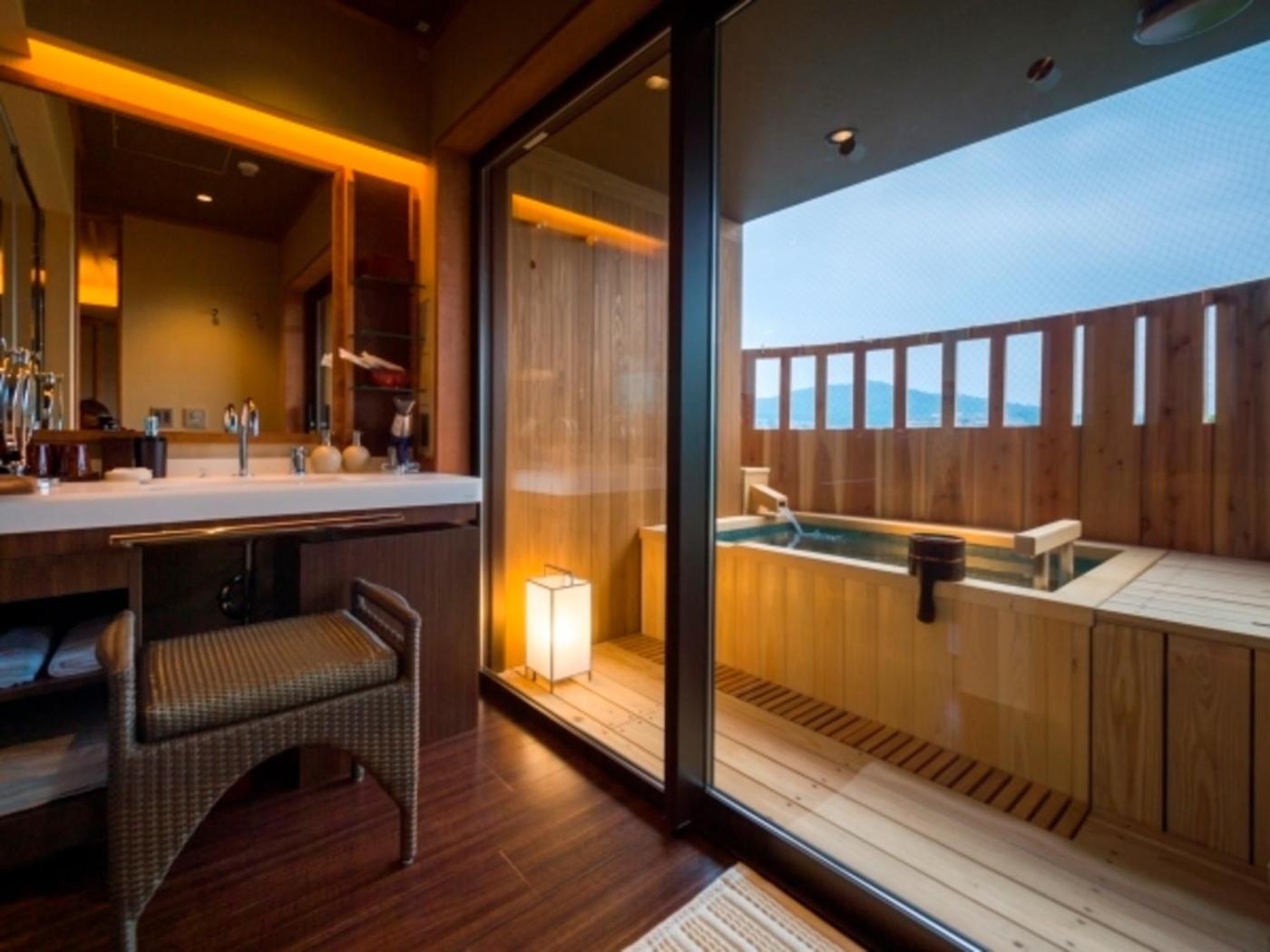 Mizuho Western Room with Open Air Bath, Mt. Fuji View. The twin room includes a private bathroom fitted with a bath or a shower. The unit has 2 beds. ;