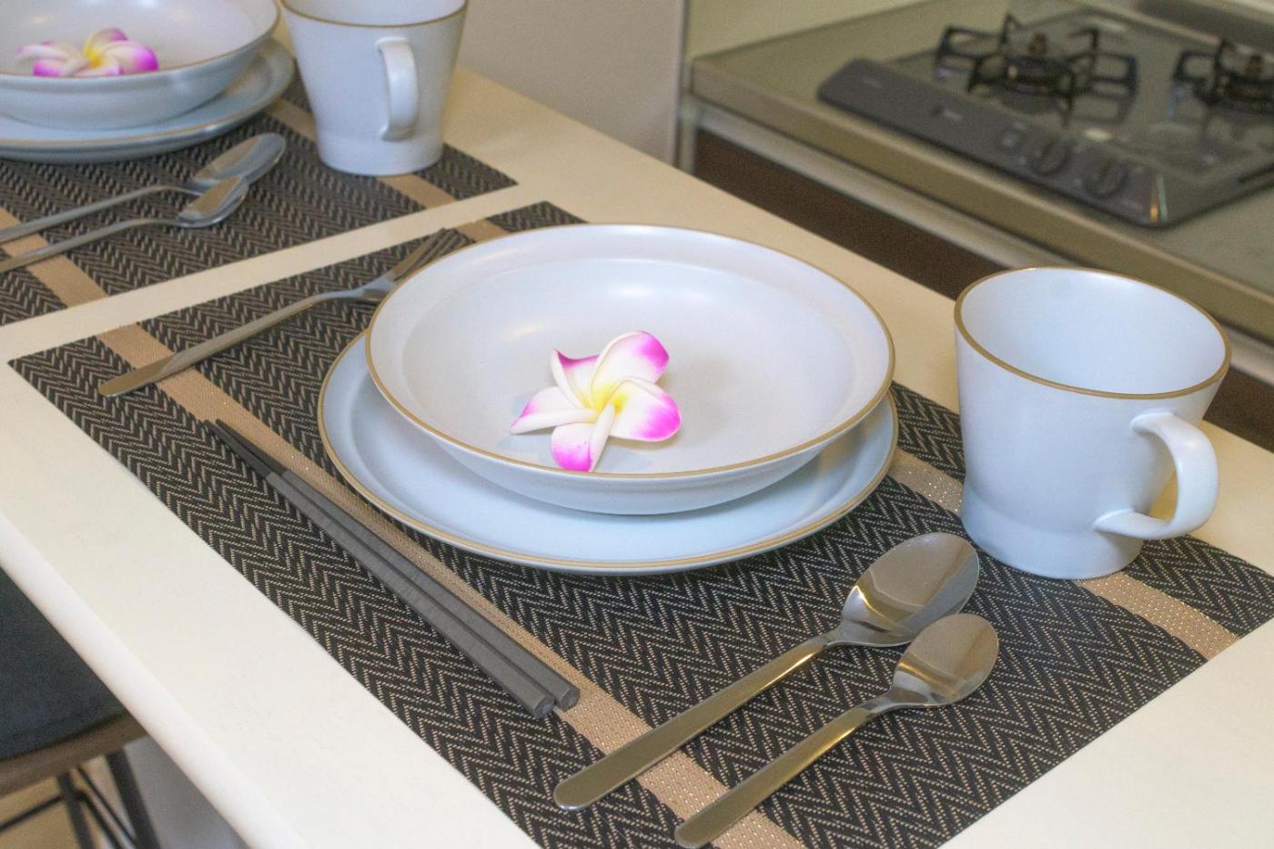 The accommodation comes with a flat-screen TV and a private bathroom with bidet, bath and slippers, while the kitchen has a microwave, a fridge and a stovetop. Kitchenware and kettle are also offered. At the apartment complex, units have bed linen and towels.