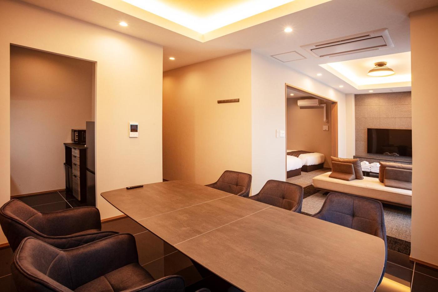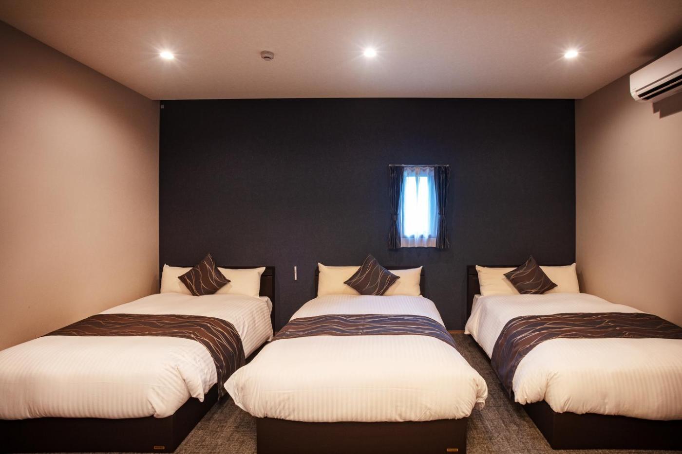 Family Room (Two Double Beds and One Sofa Bed) - Non-Smoking. The spacious family room provides air conditioning, a washing machine, as well as a private bathroom featuring a bath and a shower. Meals can be prepared in the well-fitted kitchen, which is equipped with a stovetop, a refrigerator, kitchenware and a microwave. The family room features a dining area, an electric kettle, a sofa, heating and a flat-screen TV. The unit offers 3 beds.