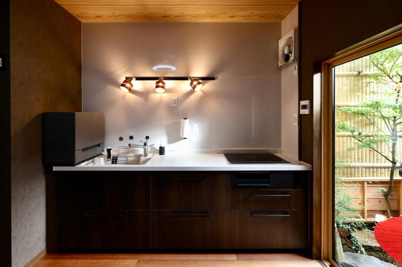 Villa with Garden View. Guests will have a special experience as this villa features a sauna. Featuring a private entrance, this spacious villa also comprises 2 bedrooms, a seating area and 2 bathrooms with a bath and a shower. Meals can be prepared in the kitchen, which comes with a stovetop, a refrigerator, a dishwasher and kitchenware. The air-conditioned villa provides a flat-screen TV, a washing machine, tatami, a tea and coffee maker as well as garden views. The unit offers 4 beds and 2 futons.