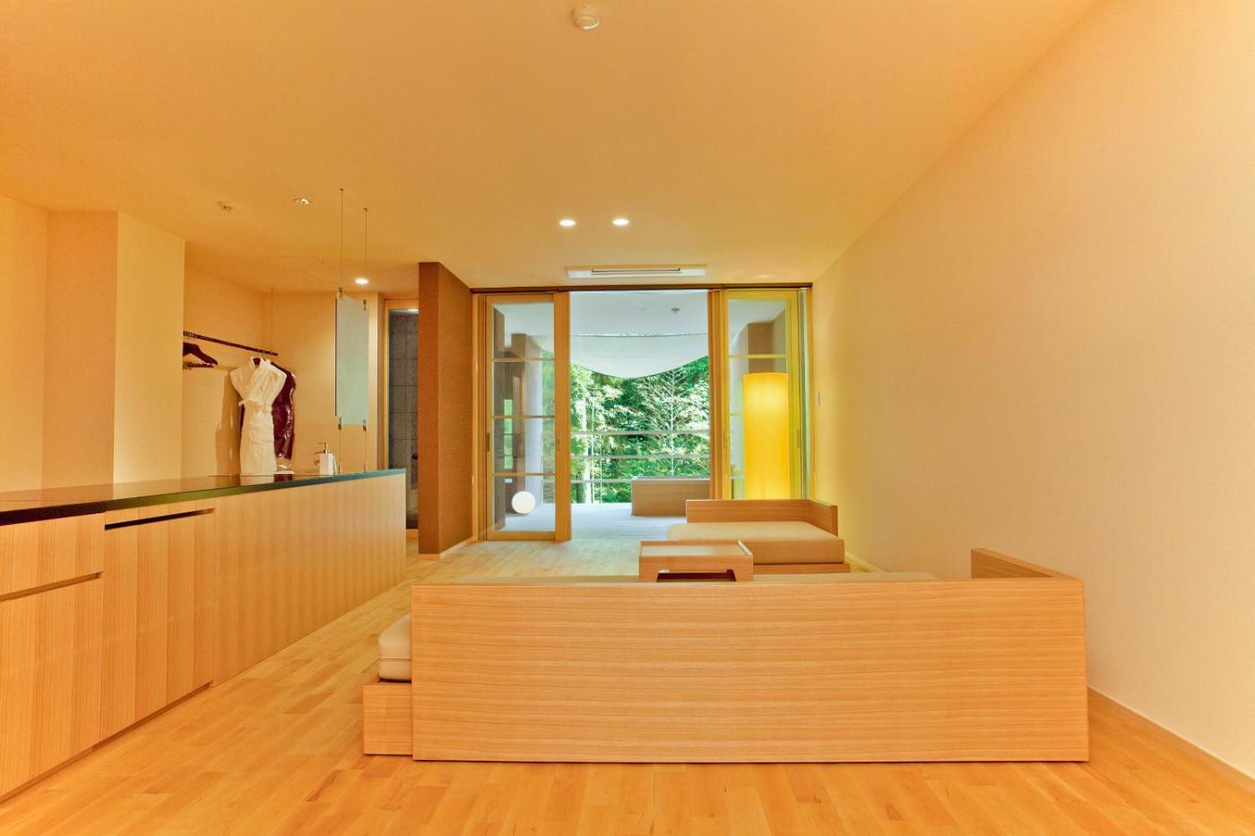 Deluxe Room with Open-Air Bath "Hikari". This room features a hot spring bath, seating aread, fridge and a coffee machine. ;
