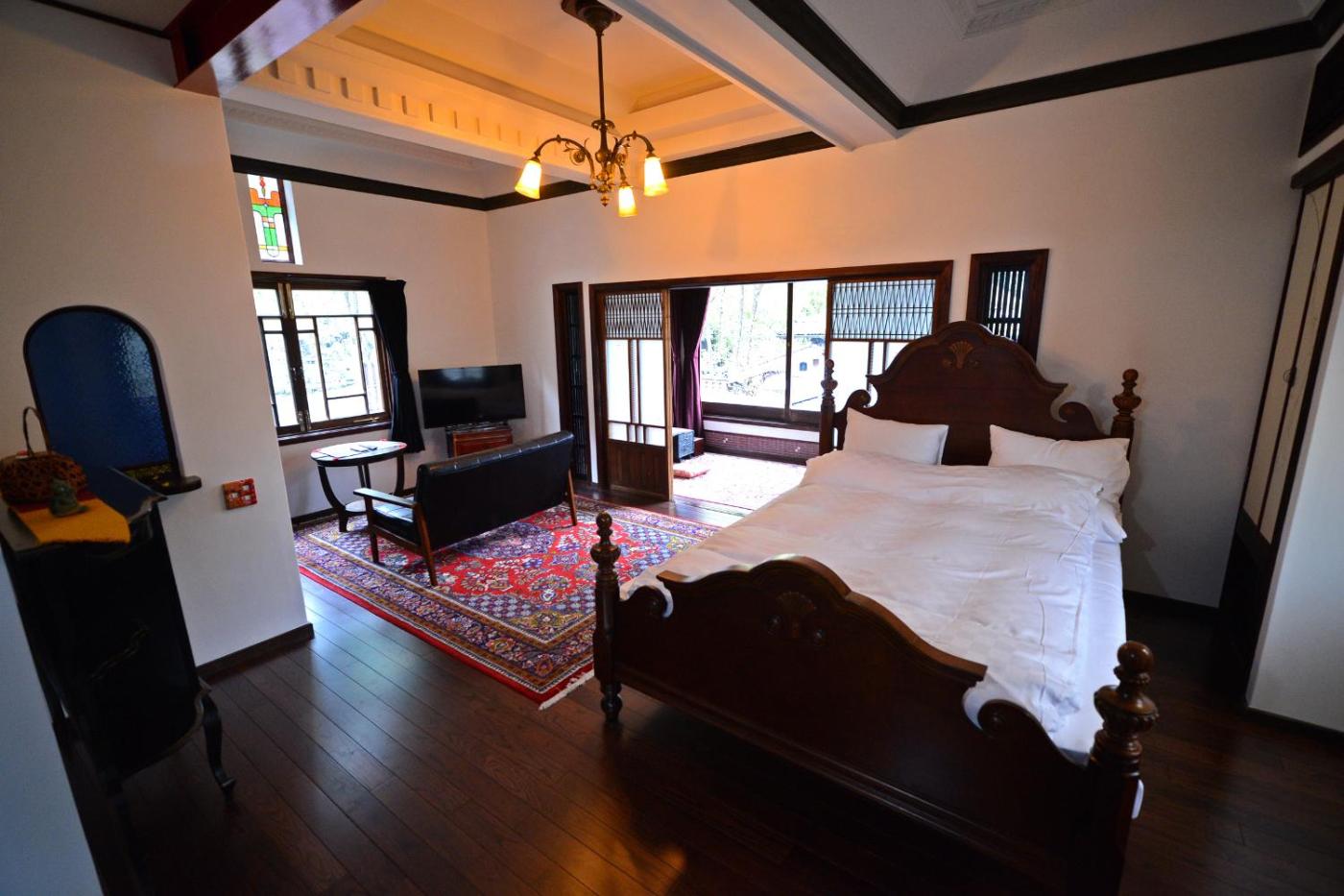 Japanese-Style Maisonette with Open-Air Bath - Annex. Boasting a private open-air bath, this family room features air conditioning, DVD player and soundproofing. ;