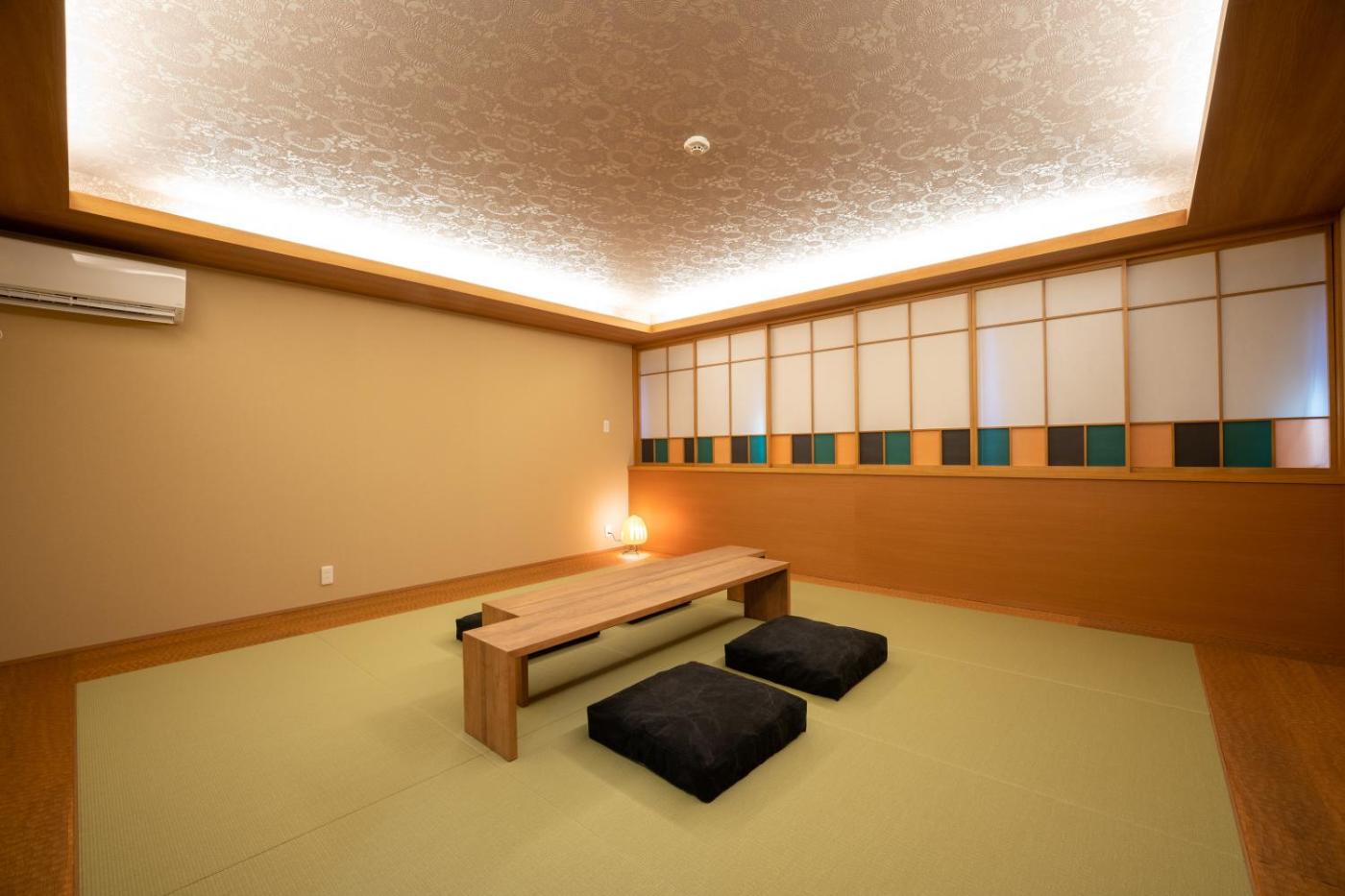 One-Bedroom Apartment 102. Boasting a private entrance, this air-conditioned apartment includes a kitchen, 1 bedroom and 1 bathroom with a bath and a shower. Guests can make meals in the kitchen that has a stovetop, a refrigerator, kitchenware and a microwave. The apartment offers a flat-screen TV, a washing machine, tatami, soundproof walls as well as a quiet street view. The unit has 6 futons. ;