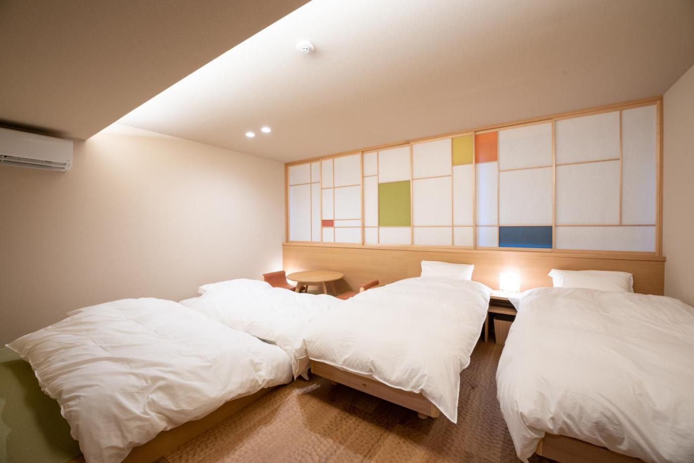 One-Bedroom Apartment 103. Featuring a private entrance, this air-conditioned apartment comprises a kitchen, 1 bedroom and 1 bathroom with a bath and a shower. In the well-equipped kitchen, guests will find a stovetop, a refrigerator, kitchenware and a microwave. The apartment provides a flat-screen TV, a washing machine, tatami, soundproof walls as well as a quiet street view. The unit offers 2 beds and 2 futons.