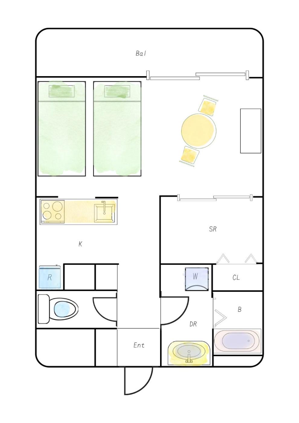 One-Bedroom Apartment. The apartments kitchenette is available for cooking and storing food. This apartment is air-conditioned and has a washing machine, an electric kettle as well as a balcony. The unit has 2 beds.