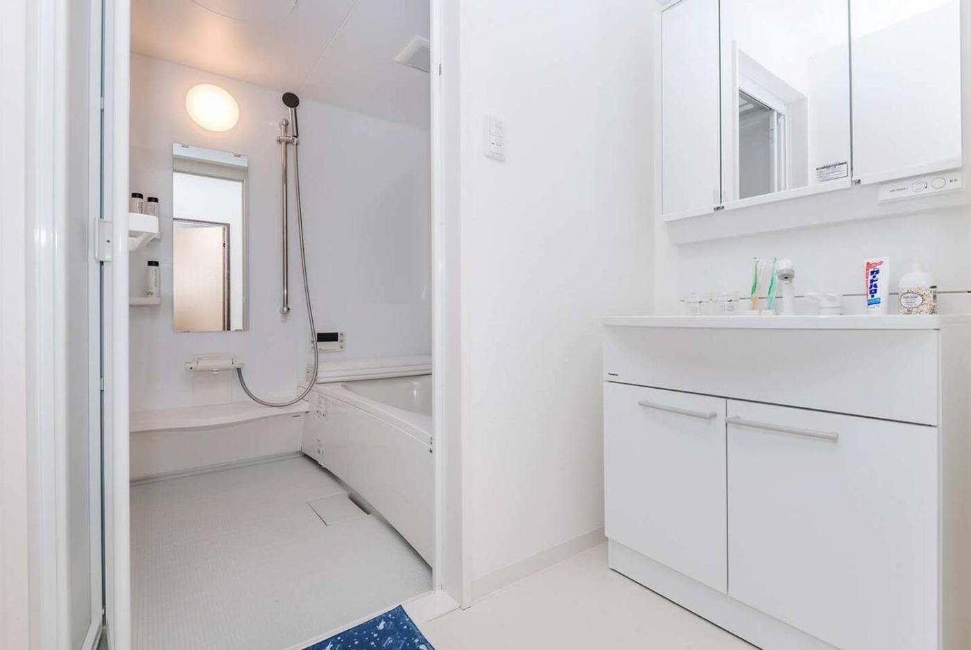 Three-Bedroom Villa. Guests will have a special experience as this villa offers a hot tub. This villa is comprised of 3 living rooms, 3 separate bedrooms and 1 bathroom with a bath and free toiletries. The well-equipped kitchenette has a stovetop, a refrigerator, a microwave and an electric kettle. This villa is air-conditioned and features a washing machine, tatami as well as a balcony. The unit offers 6 futons.