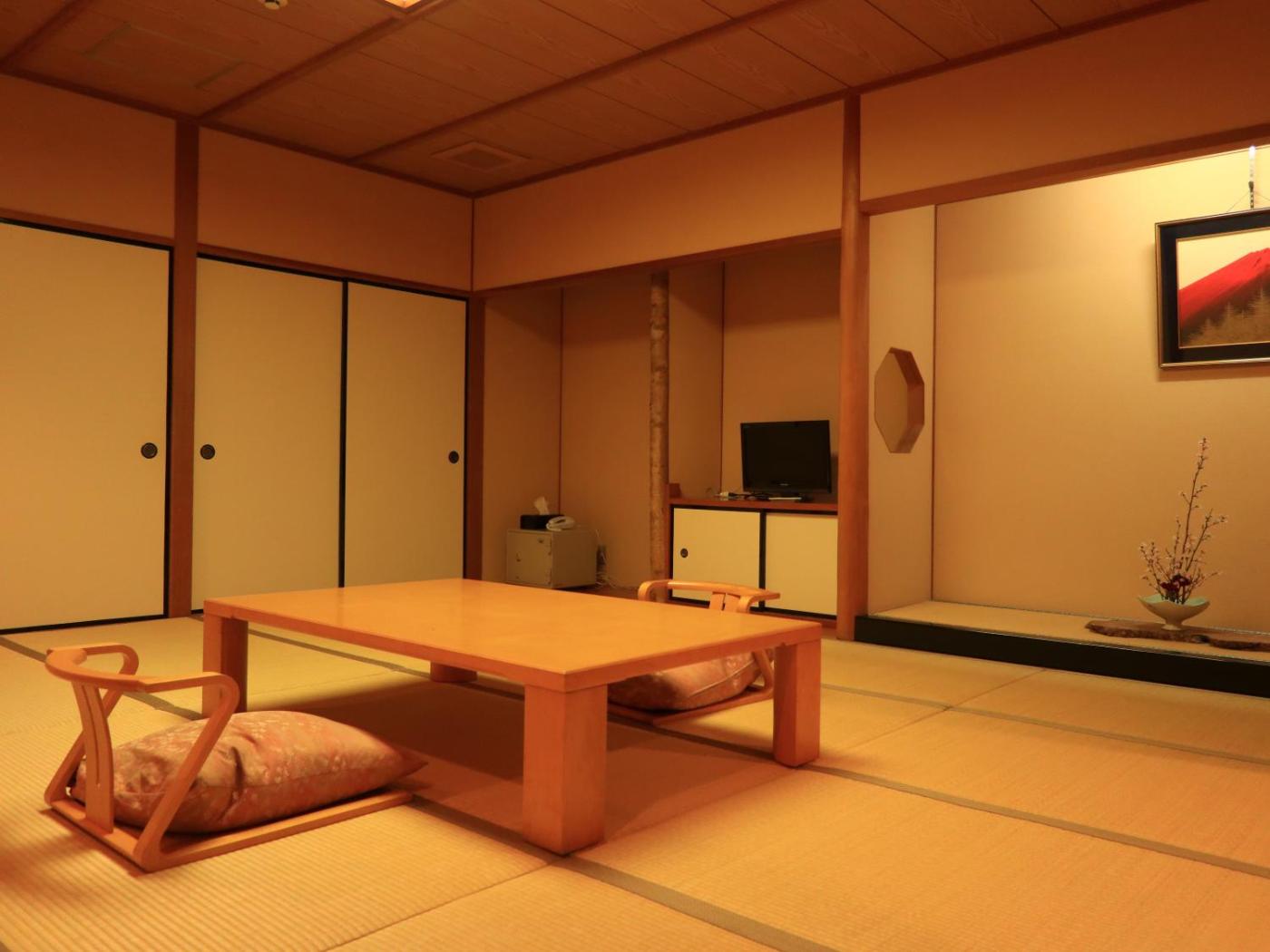 Japanese-Style Room. This air-conditioned room features tatami (woven-straw) floors and Japanese futon bedding. A fridge and a flat-screen TV are included. The en suite bathroom comes with slippers and a hairdryer.