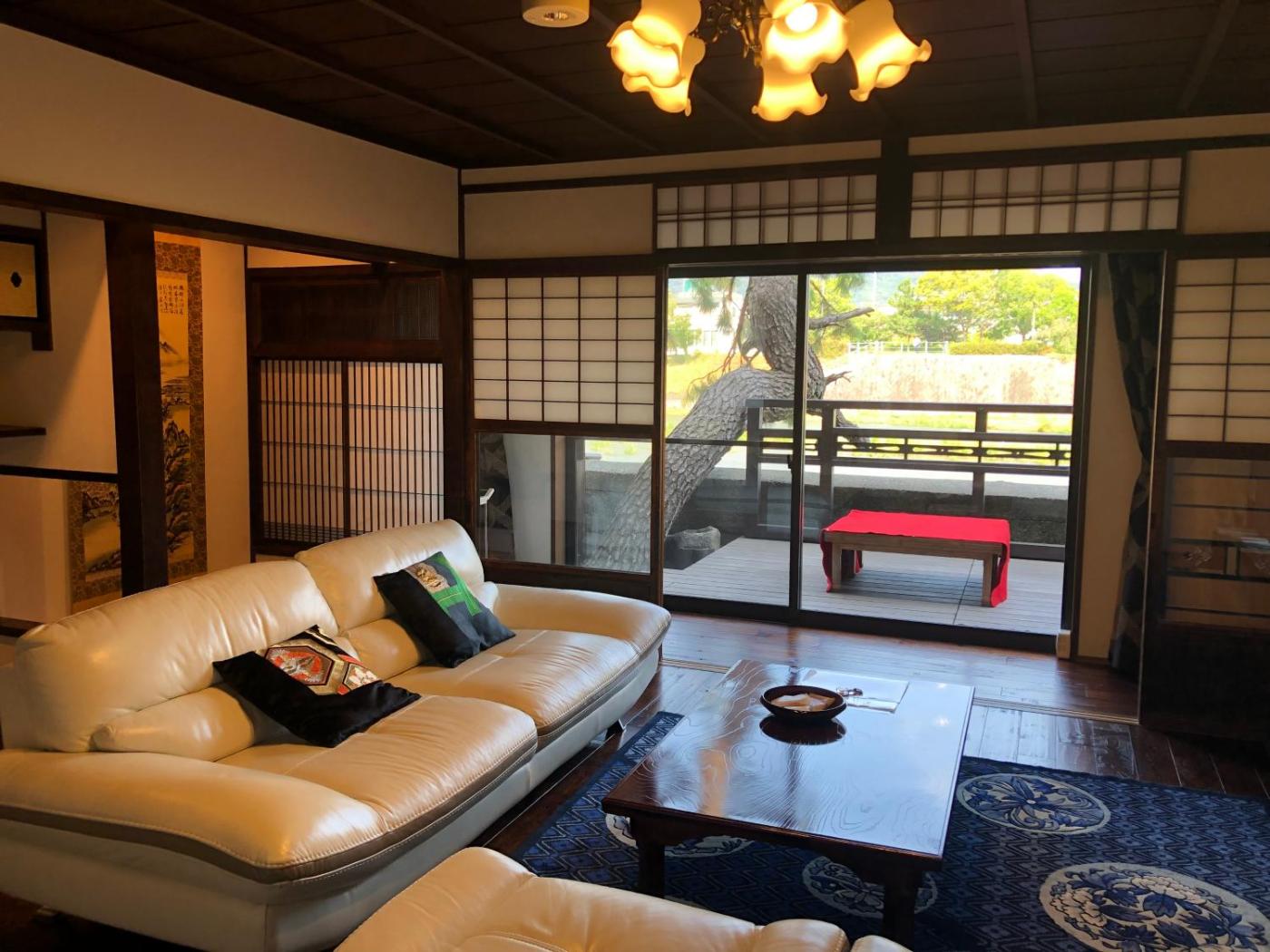 Two-Bedroom House. The fully equipped kitchen features a refrigerator, kitchenware, a tea and coffee maker and a toaster. The spacious air-conditioned holiday home provides a flat-screen TV with streaming services, a washing machine, tatami, a private entrance as well as garden views. The unit offers 2 beds and 3 futons.