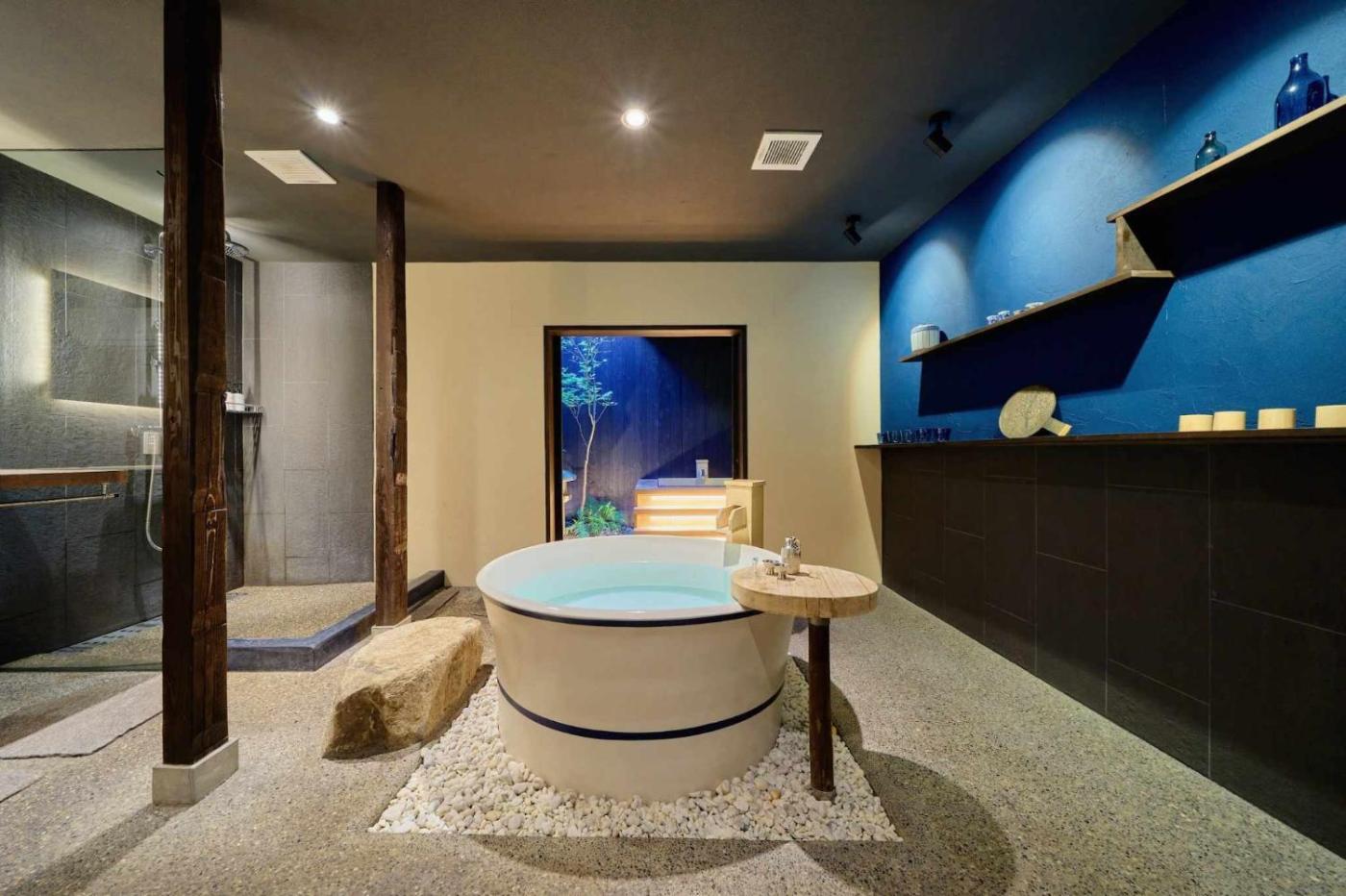 Suite Japanese-Style Townhouse with Open-Air Bath. The hot tub and private open-air bath are the special features of this villa. Featuring a private entrance, this air-conditioned villa is comprised of 1 living room, 2 separate bedrooms and 1 bathroom with a bath and a shower. The villa offers a flat-screen TV with streaming services, tatami, a minibar, a tea and coffee maker as well as a quiet street view. The unit offers 2 beds and 3 futons.