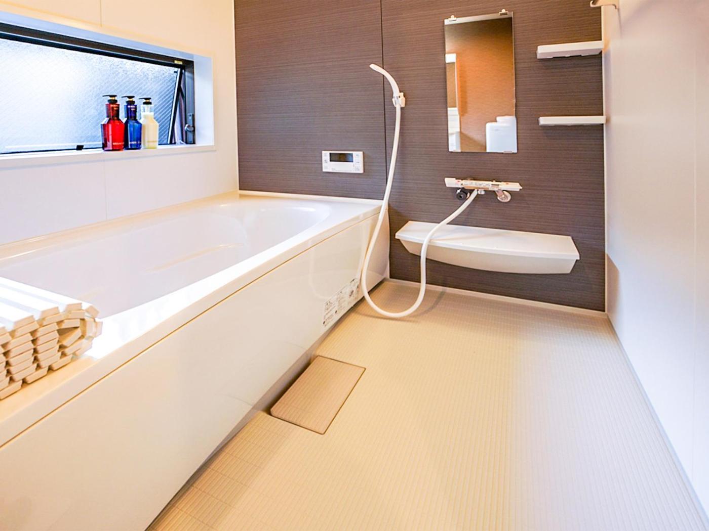 Three-Bedroom Villa. This villas standout feature is the hot tub. The air-conditioned villa features 3 bedrooms and 2 bathrooms with a bath and a shower. In the kitchen, guests will find a stovetop, a refrigerator, kitchenware and a microwave. Among the room amenities are a washing machine, tatami, a dining area as well as a patio and ancourtyard view. The unit offers 6 futons.
