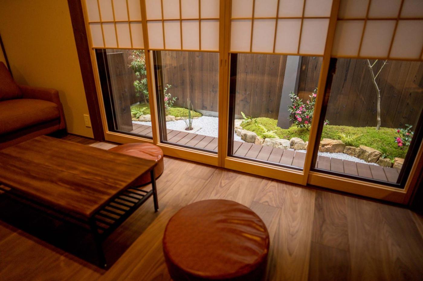 Two-Bedroom Villa. Featuring a private entrance, this air-conditioned villa comprises 1 living room, 2 separate bedrooms and 1 bathroom with a bath and a shower. Meals can be prepared in the kitchen, which comes with a stovetop, a refrigerator, kitchenware and a microwave. The villa provides a flat-screen TV, a washing machine, tatami, a coffee machine as well as garden views. The unit offers 2 beds and 3 futons.