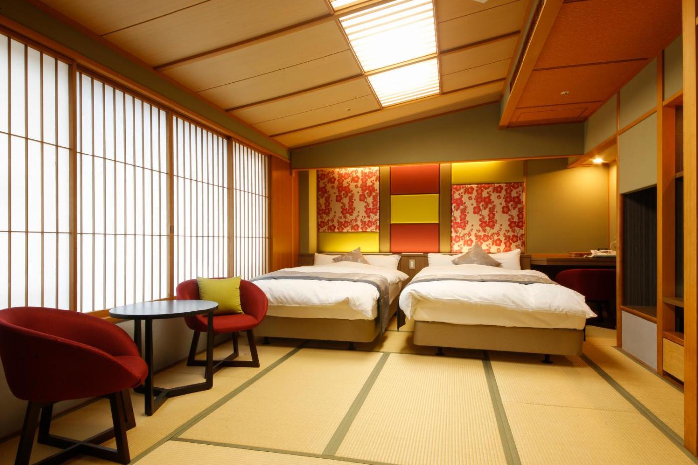 Superior Twin Room with Garden View. The twin room includes a private bathroom, well-fitted with a bath, a shower, a bidet, a hairdryer and slippers. The twin room offers air conditioning, tatami, a wardrobe, a safe deposit box, as well as a flat-screen TV. The unit has 2 beds.