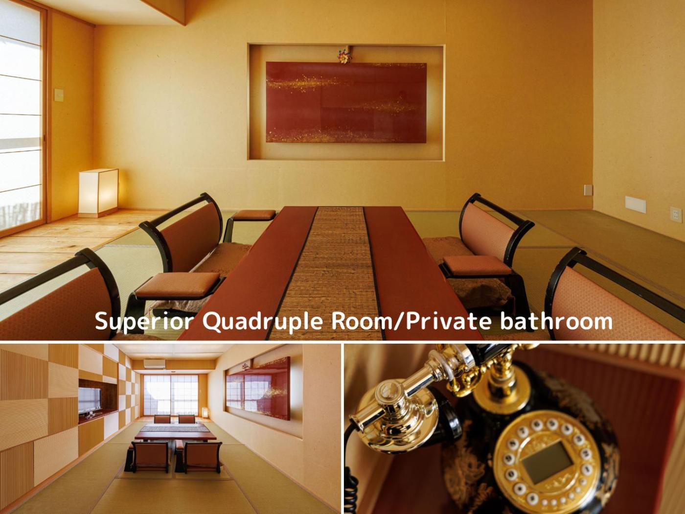 Superior Quadruple Room. The quadruple room offers air conditioning, tatami, as well as a private bathroom featuring a shower and a bidet. The unit offers 4 futons. ;