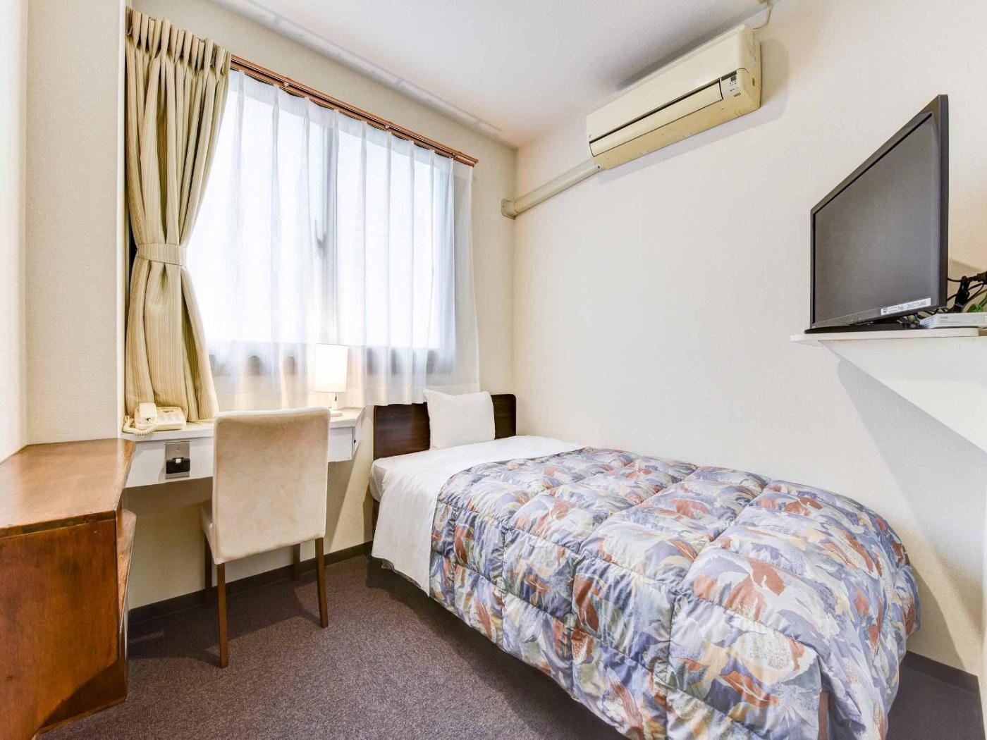 Single Room - Smoking. The single room includes a private bathroom, well-fitted with a bath, a shower, a bidet, a hairdryer and slippers. The air-conditioned single room features a flat-screen TV with satellite channels, a carpeted floor, pajamas, heating as well as city views. The unit has 1 bed. ;