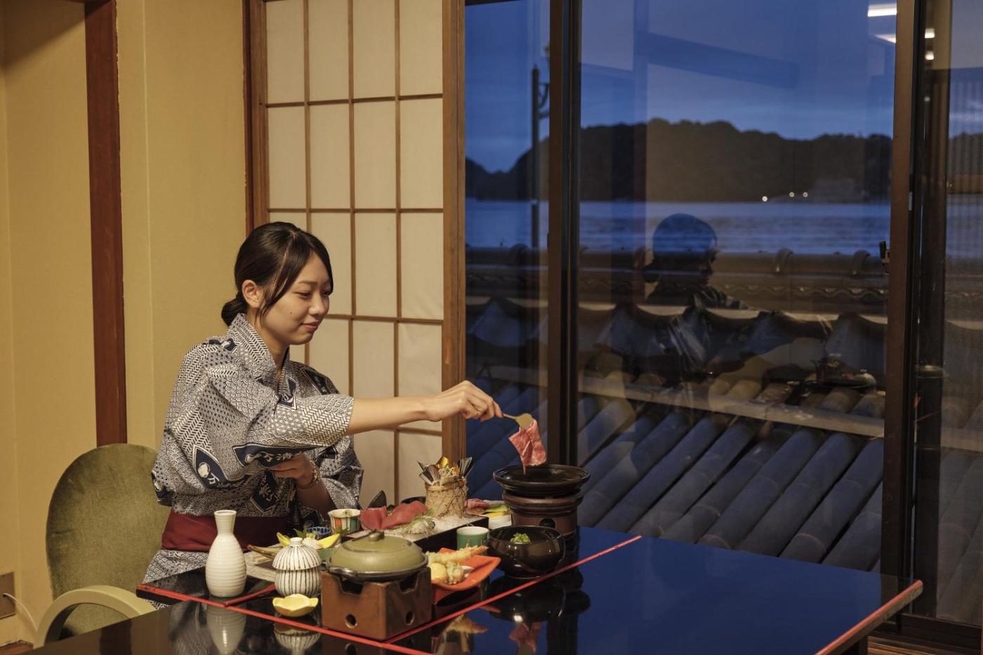 The ryokan offers some units with sea views, and units come with a private bathroom.