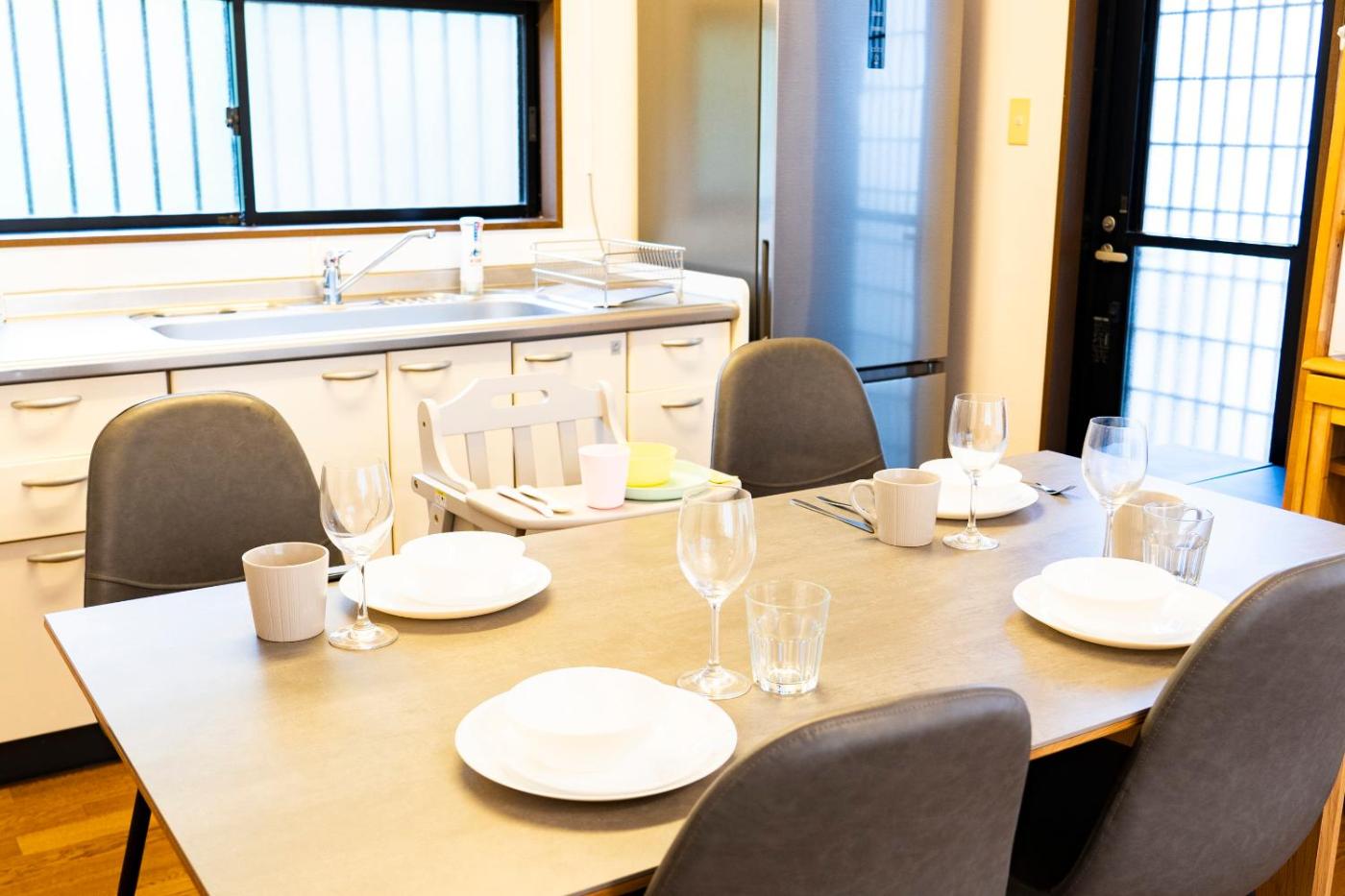 Four-Bedroom Apartment with Balcony. Featuring a private entrance, this air-conditioned apartment comprises 1 living room, 4 separate bedrooms and 1 bathroom with a bath and a shower. Guests can make meals in the kitchen that is equipped with a stovetop, a refrigerator, kitchenware and a microwave. The spacious apartment provides a washing machine, a tea and coffee maker, a dining area, a wardrobe and a flat-screen TV with streaming services. The unit offers 12 beds.