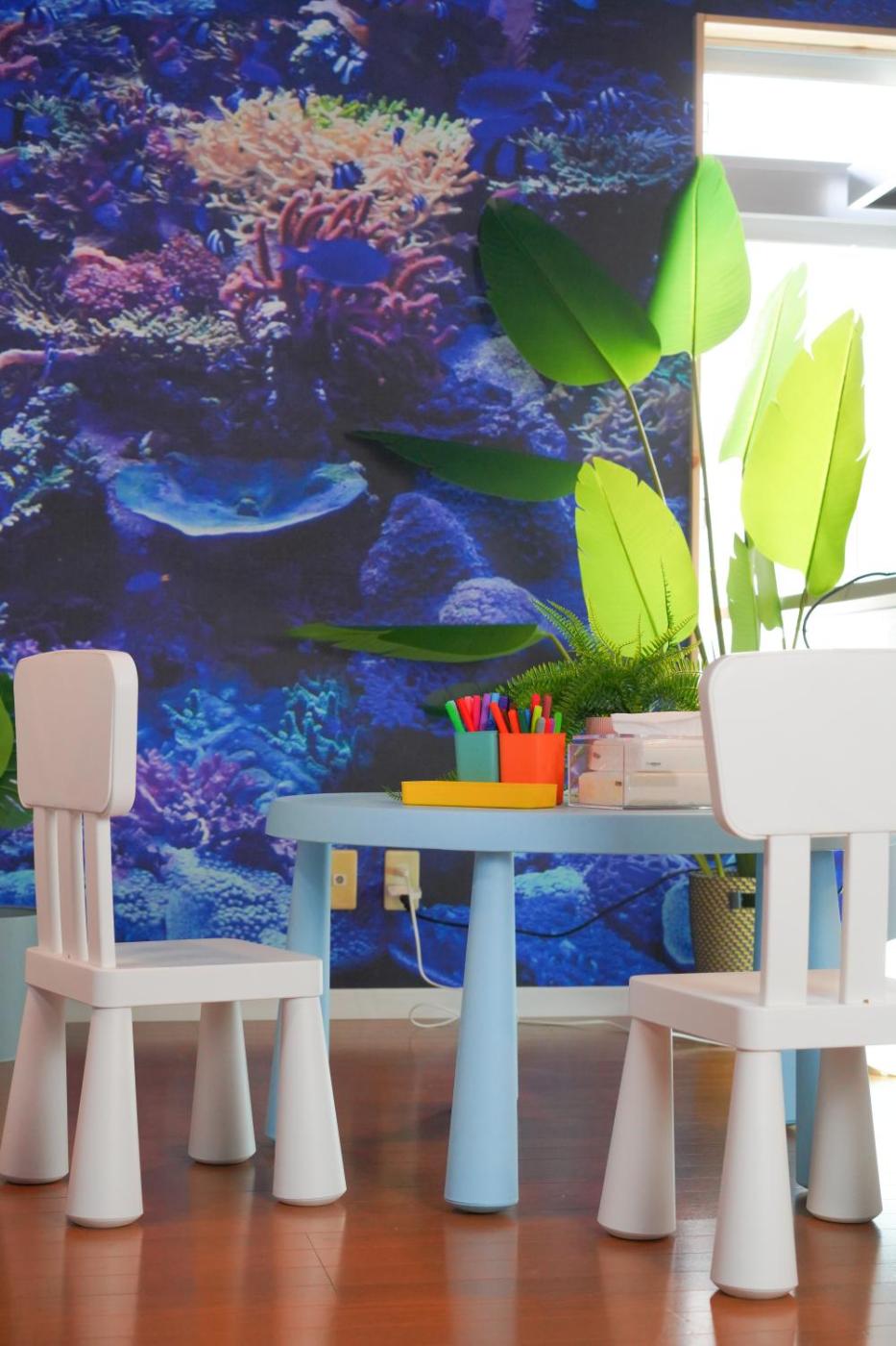 For guests with children, the apartment features an indoor play area, outdoor play equipment and a baby safety gate.