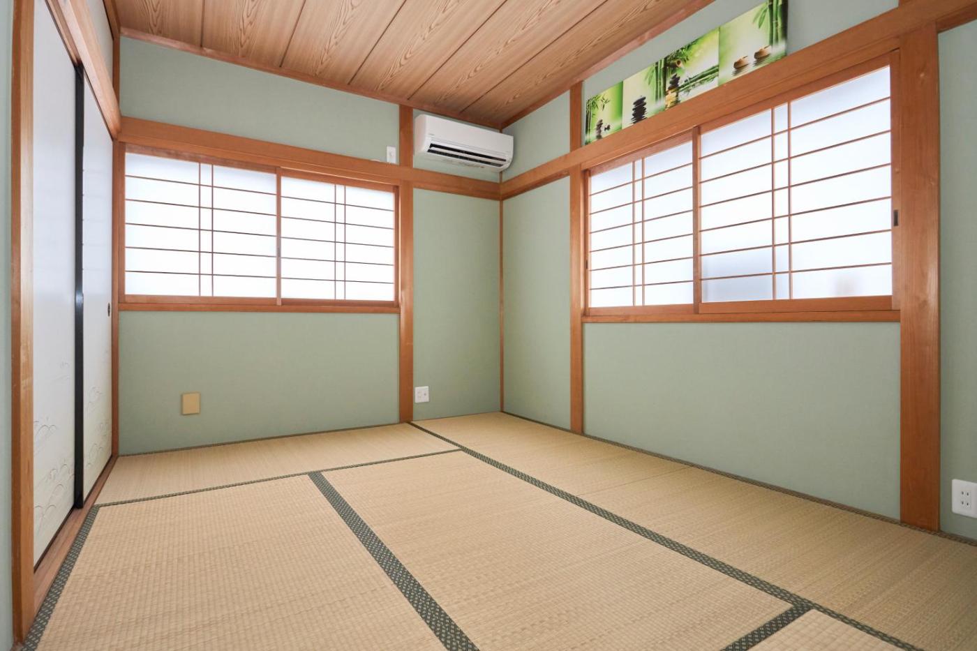 Family Room. The family room offers air conditioning, a washing machine, as well as a private bathroom featuring a bath and a shower. The well-fitted kitchen features a stovetop, a refrigerator, kitchenware and a microwave. The family room features tatami, a private entrance, a dining area, a wardrobe, as well as a flat-screen TV. The unit offers 4 beds and 3 futons.