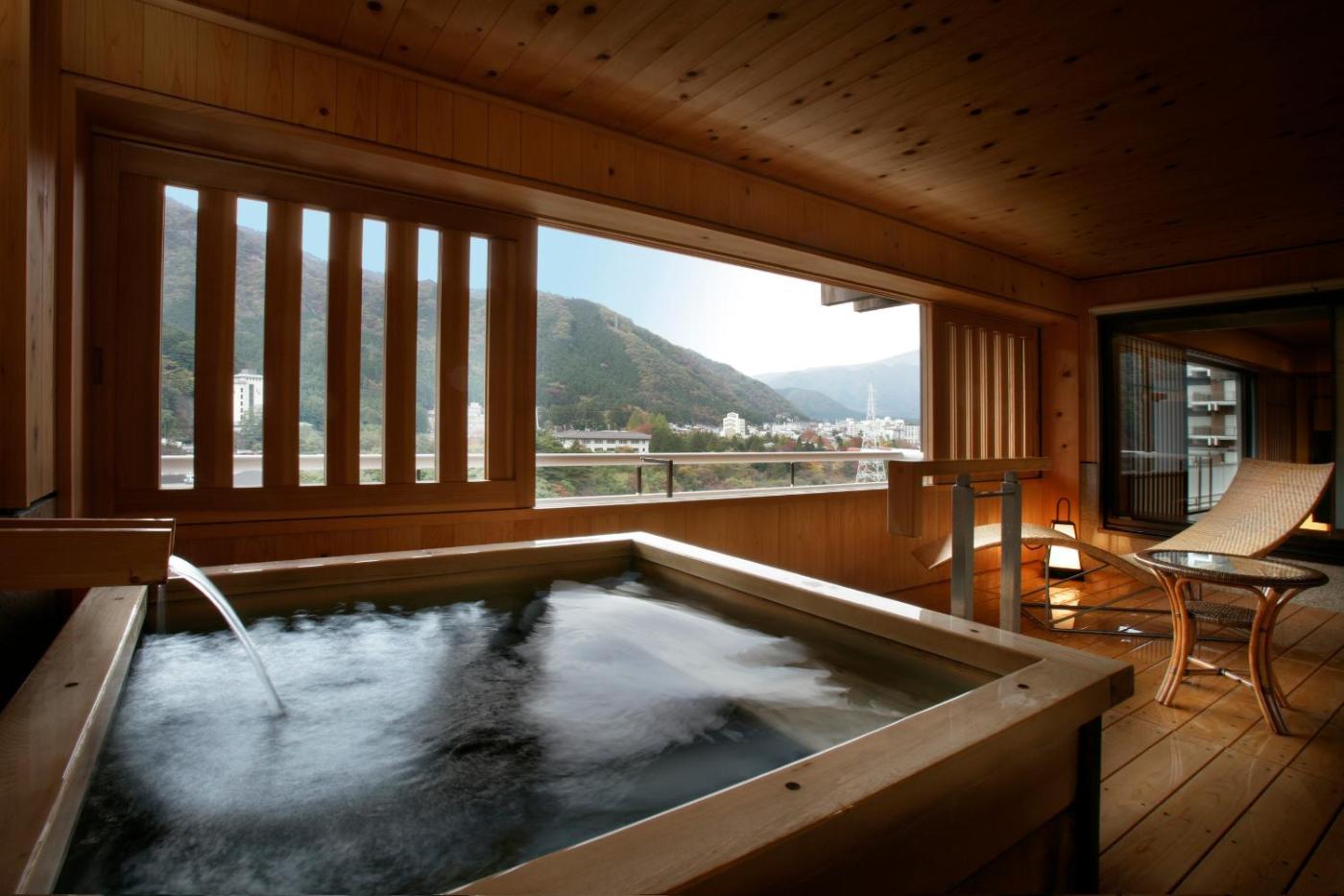 Junior Suite. The private open-air bath is the standout feature of this suite. The spacious suite has 1 bedroom and 1 bathroom with a shower and free toiletries. The suite features tatami floors, a seating area with a flat-screen TV, air conditioning, a wardrobe as well as mountain views. The unit has 2 beds.