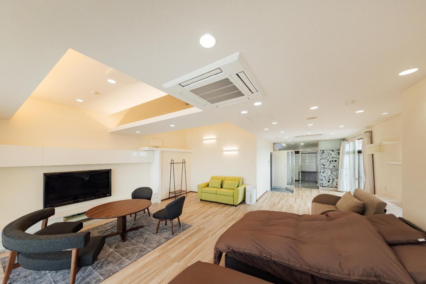 Twin Room. The spacious twin room provides air conditioning, tatami, as well as a private bathroom featuring a bath and a shower. The unit offers 2 beds and 3 futons. ;