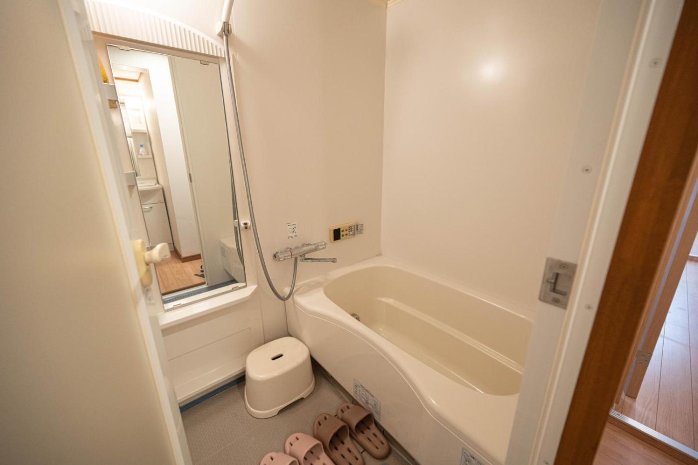Three-Bedroom Apartment. The air-conditioned apartment has 2 bedrooms and 1 bathroom with a bath and a shower. Guests can make meals in the kitchen that has a stovetop, a refrigerator, kitchenware and an oven. The apartment features a washing machine, tatami, a dining area, an electric kettle, as well as a flat-screen TV with streaming services. The unit has 3 beds.