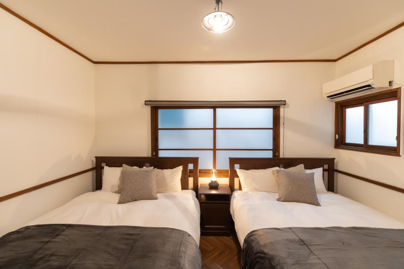 Six-Bedroom House. Featuring a private entrance, this spacious holiday home also comprises 6 bedrooms, a seating area and 2 bathrooms with a bath and a shower. Guests can make meals in the kitchen that comes with a stovetop, a refrigerator, a microwave and a toaster. The air-conditioned holiday home provides a flat-screen TV, a washing machine, tatami, a dining area as well as a quiet street view. The unit offers 8 beds and 4 futons.