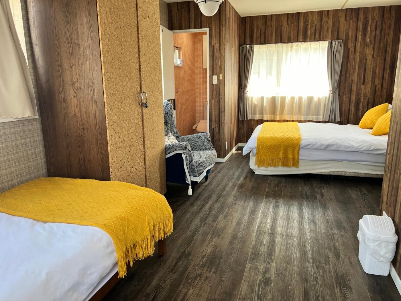 Two-Bedroom Villa. Boasting a private entrance, this air-conditioned villa comes with a kitchen, 2 bedrooms and 1 bathroom with a walk-in shower and a hairdryer. In the well-equipped kitchen, guests will find a stovetop, a refrigerator, kitchenware and an oven. The villa has tatami floors, a seating area with a flat-screen TV, a washing machine, soundproof walls as well as city views. The unit has 7 beds.