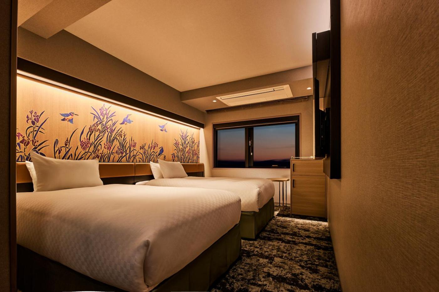 Deluxe Twin Room. The twin room includes a private bathroom, well-fitted with a bath, a shower, a bidet, a hairdryer and slippers. The air-conditioned twin room provides a flat-screen TV, tatami, soundproof walls, a safe deposit box as well as city views. The unit offers 2 beds. ;