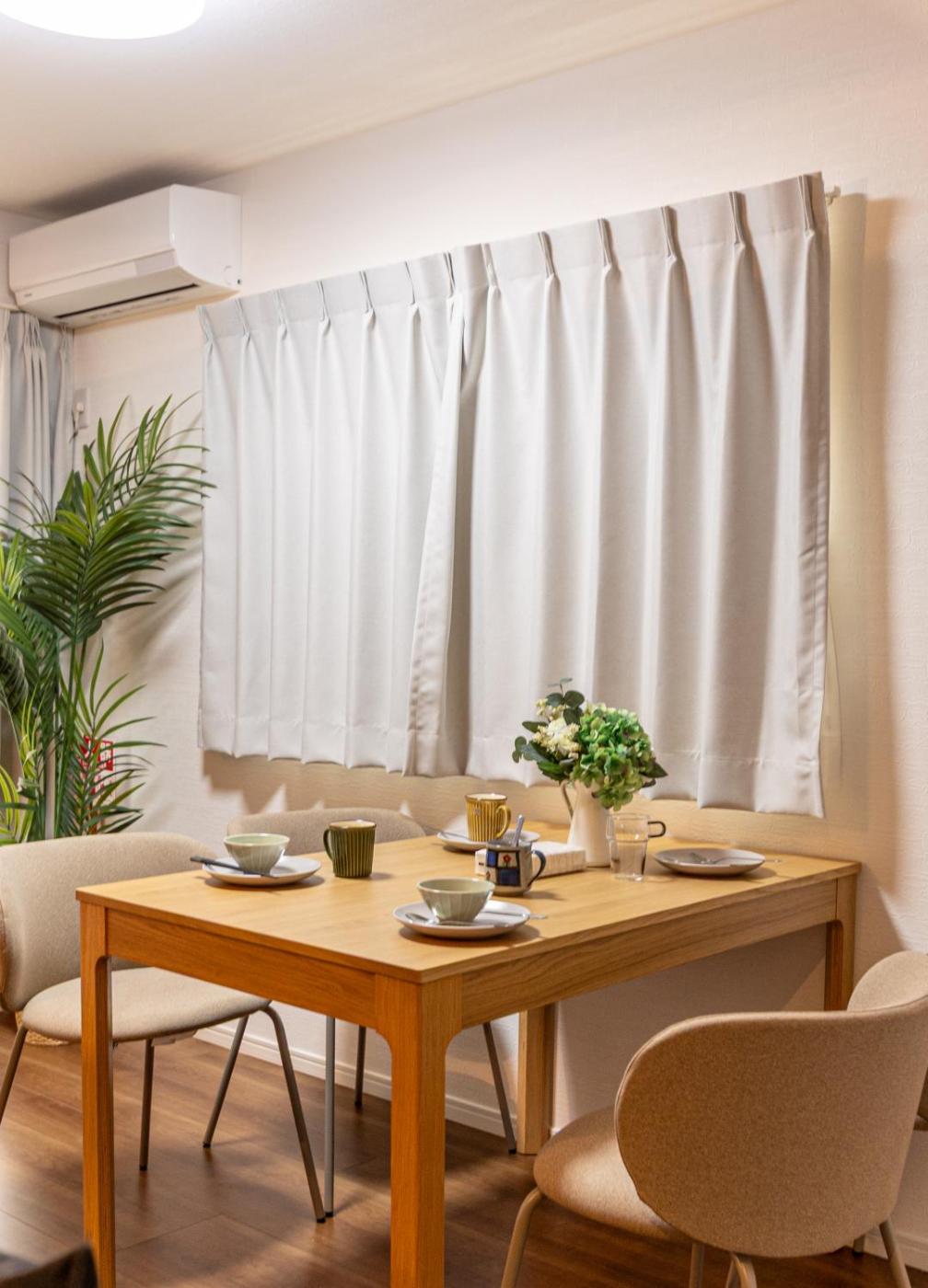 Three-Bedroom Home. Boasting a private entrance, this air-conditioned holiday home comes with 1 living room, 3 separate bedrooms and 1 bathroom with a bath and a shower. The well-equipped kitchen has a stovetop, a refrigerator, a dishwasher and kitchenware. The holiday home features tatami floors, a seating area with a TV, a washing machine, a dining area, as well as a wardrobe. The unit has 2 beds and 3 futons.
