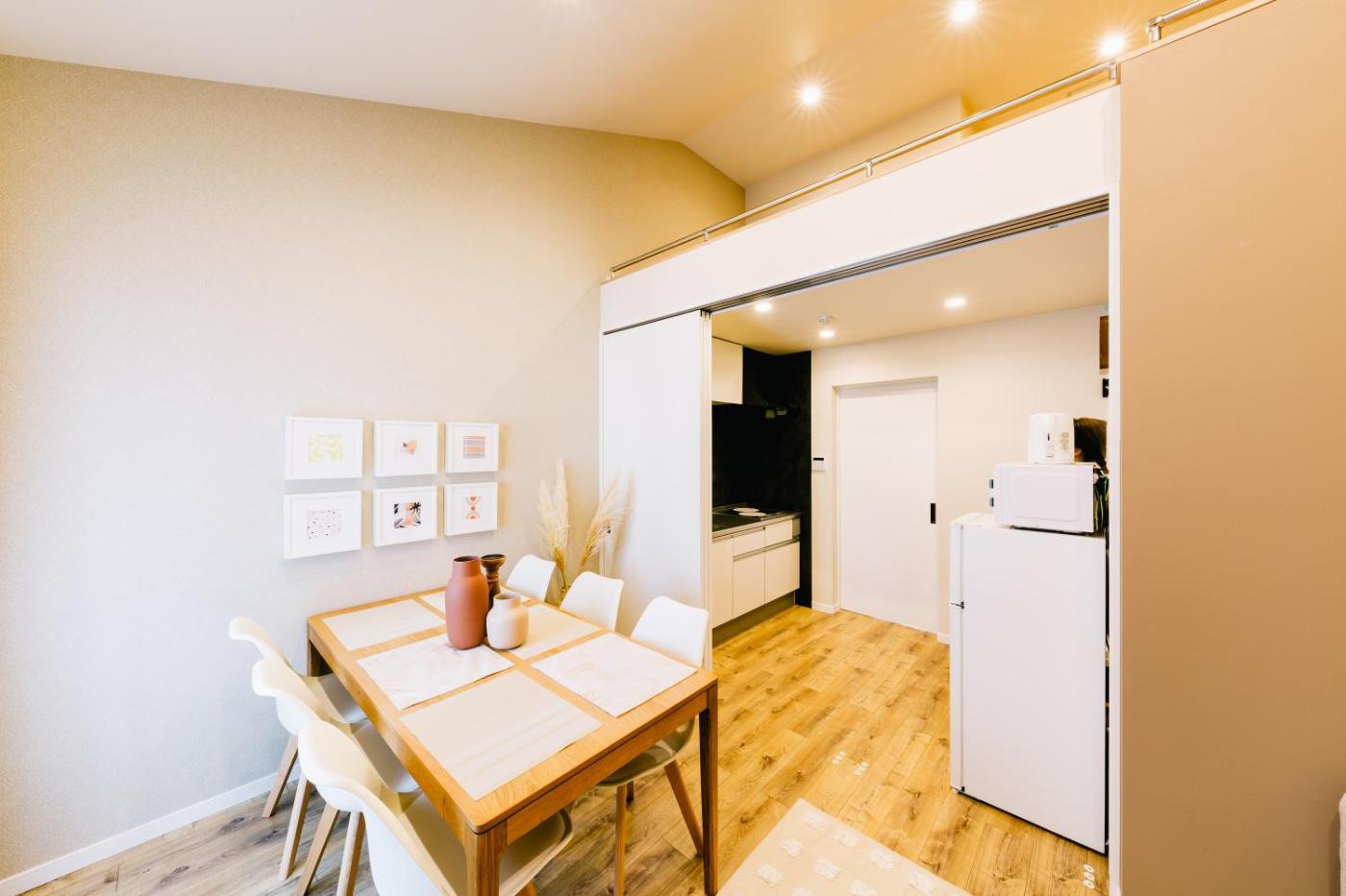 Four-Bedroom Apartment 101. This apartment features a hot tub. Boasting a private entrance, this air-conditioned apartment features 1 living room, 4 separate bedrooms and 3 bathrooms with a bath and a shower. Meals can be prepared in the well-fitted kitchen, which features a refrigerator, kitchenware and a microwave. The spacious apartment features a washing machine, tatami, a dining area, an electric kettle and a flat-screen TV. The unit has 7 beds and 2 futons. ;