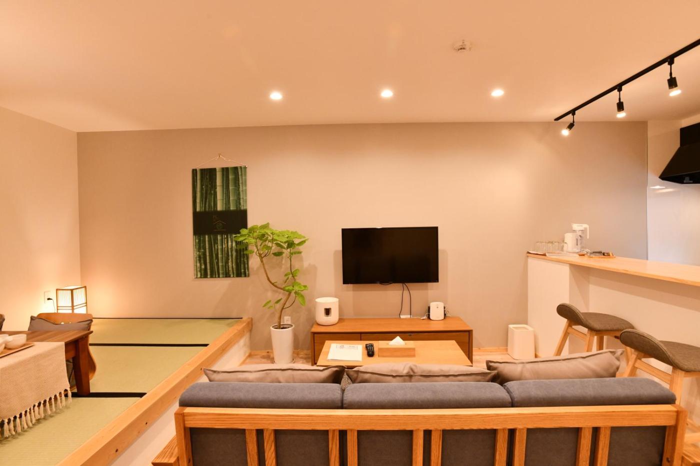 Two-Bedroom House. Boasting a private entrance, this air-conditioned holiday home features 1 living room, 2 separate bedrooms and 1 bathroom with a bath and a shower. In the fully equipped kitchen, guests will find a stovetop, a refrigerator, kitchenware and a microwave. Featuring a terrace, this holiday home also features a washing machine, tatami and a flat-screen TV with streaming services. The unit has 3 beds.