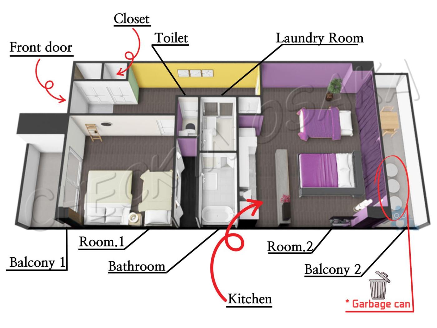 G3 ll 특별가격 전철역 도보3분 번화가의 조용한 2룸 퍼플하우스 침대4