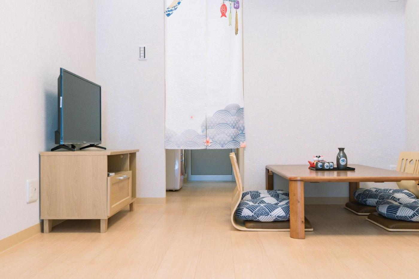 One-Bedroom Apartment. Meals can be prepared in the well-fitted kitchen, which is equipped with a refrigerator, kitchenware, a microwave and an electric kettle. The apartment features tatami floors, a seating area with a flat-screen TV with cable channels, air conditioning, a washing machine, as well as a private entrance. The unit offers 5 futons.