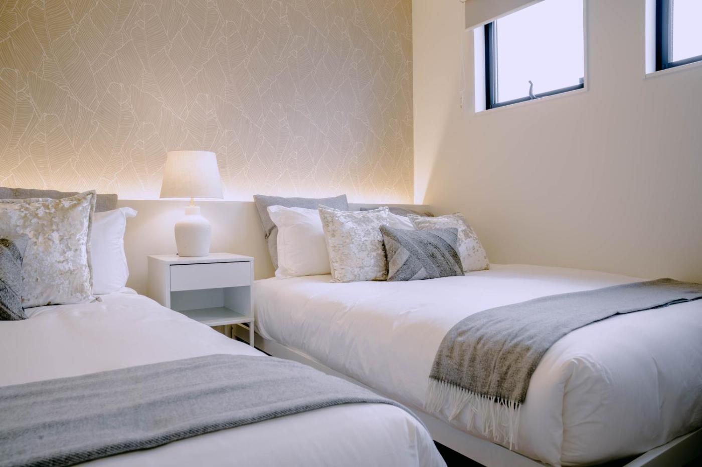 Three-Bedroom Villa. Featuring a private entrance, this air-conditioned villa is comprised of 1 living room, 3 separate bedrooms and 1 bathroom with a bath and a hairdryer. Guests can make meals in the kitchen that is fitted with a stovetop, a refrigerator, kitchenware and an oven. Boasting a balcony, this villa also offers a washing machine, tatami and a flat-screen TV. The unit offers 5 beds.