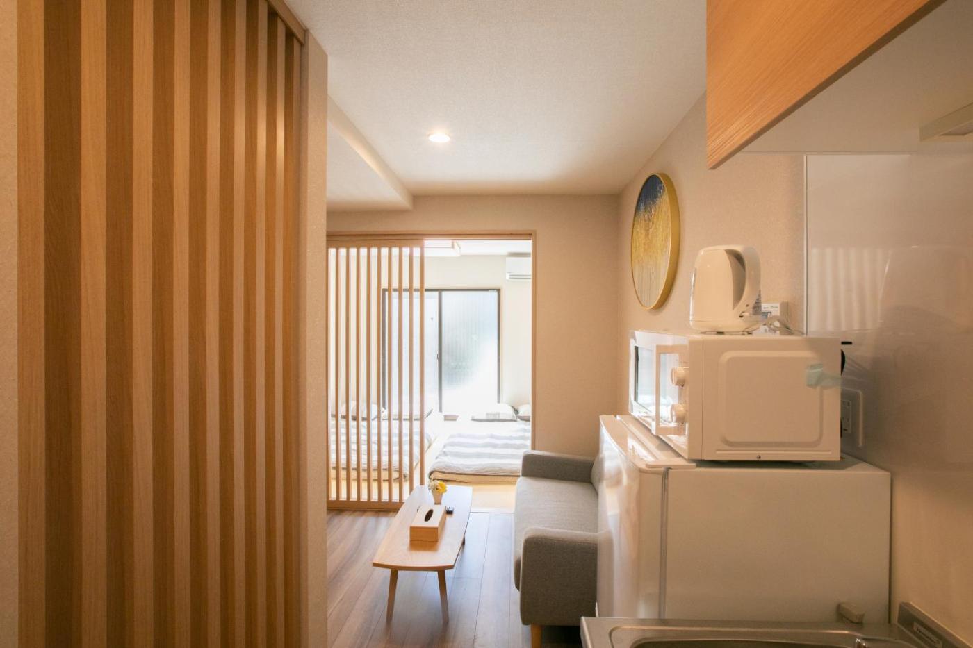 Twin Room with Balcony. The twin room features air conditioning, a washing machine, as well as a private bathroom boasting a bath and a shower. The well-equipped kitchen has a stovetop, a refrigerator, kitchenware and a microwave. Featuring a balcony, this twin room also offers tatami, a wardrobe and a TV. The unit has 2 beds. ;