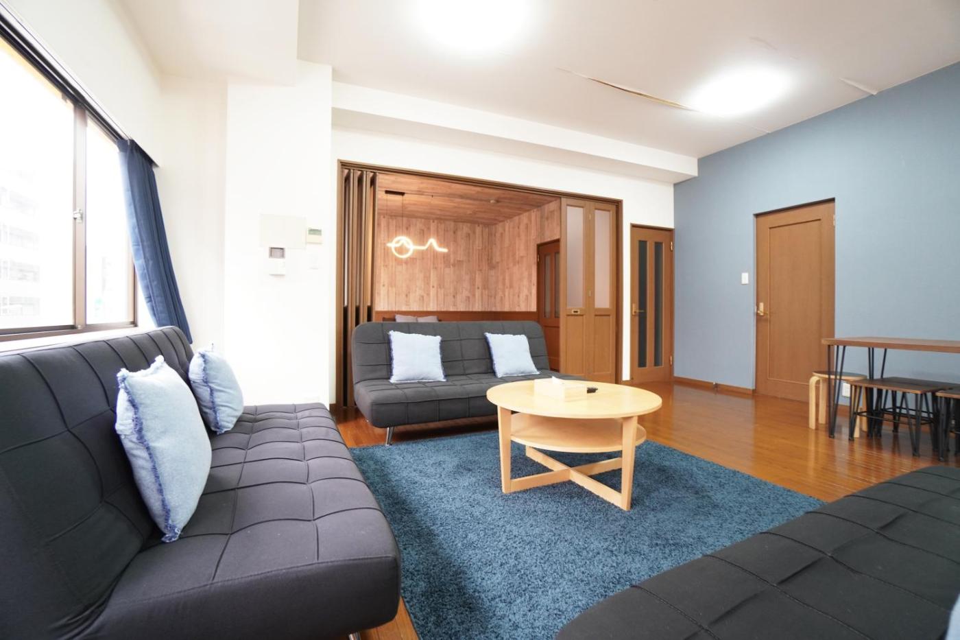 Apartment. This spacious apartment features 1 living room, 4 separate bedrooms and 2 bathrooms with a bath and a shower. The well-equipped kitchen has a stovetop, a refrigerator, kitchenware and a microwave. The apartment features air conditioning, a washing machine, tatami, a dining area, as well as a flat-screen TV. The unit has 9 beds and 4 futons.