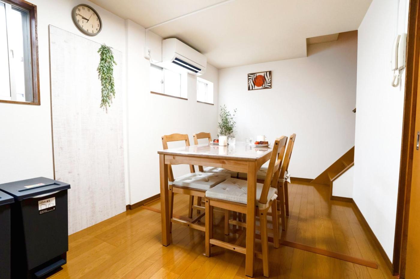 Two-Bedroom House. Boasting a private entrance, this air-conditioned holiday home features a kitchen, 2 bedrooms and 1 bathroom with a bath and a shower. The kitchen has a stovetop, a refrigerator and a microwave. The holiday home has a washing machine, tatami, a tea and coffee maker as well as a balcony with a quiet street view. The unit has 4 beds and 2 futons.