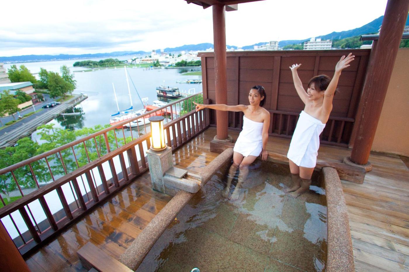 Suite with Spa Bath. The hot tub and private open-air bath are the special features of this suite. This spacious suite comes with 1 living room, 1 separate bedroom and 1 bathroom with a bath and free toiletries. The suite has tatami floors, a seating area with a flat-screen TV, air conditioning, a tea and coffee maker as well as lake views. The unit has 2 beds and 3 futons. ;