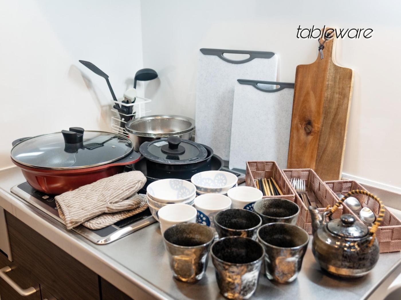 Studio. The spacious studio features air conditioning, a washing machine, as well as a private bathroom boasting a bath and a shower. Guests can make meals in the kitchen that features a stovetop, a refrigerator, kitchenware and a microwave. This studio provides a TV. The unit has 4 beds and 3 futons.