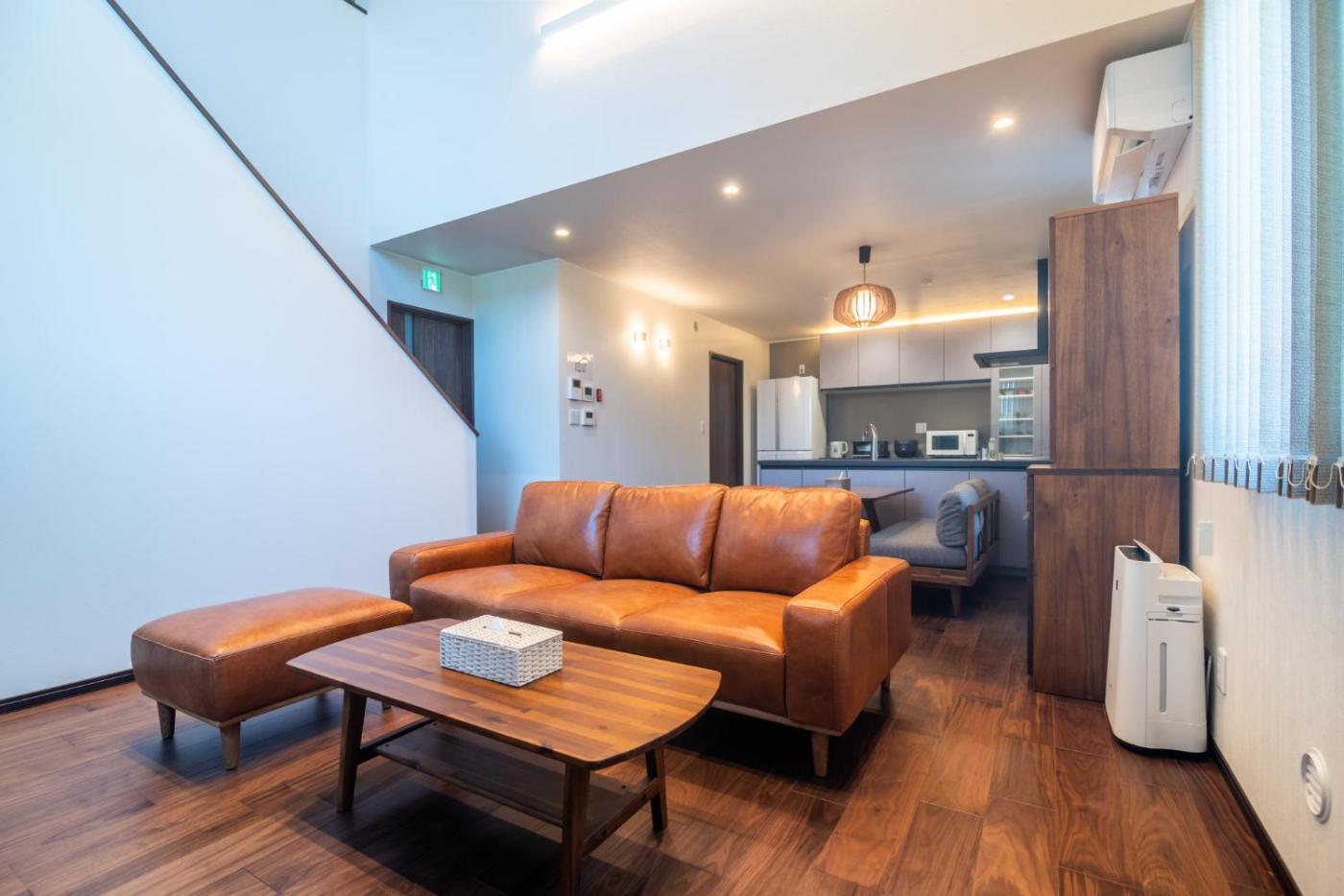 Villa. This air-conditioned villa includes 1 living room, 4 separate bedrooms and 2 bathrooms with a bath. In the well-fitted kitchen, guests will find a stovetop, a refrigerator, a dishwasher and an oven. The villa has tatami floors, a seating area with a flat-screen TV, a washing machine, a dining area, as well as an electric kettle. The unit has 5 beds and 2 futons.