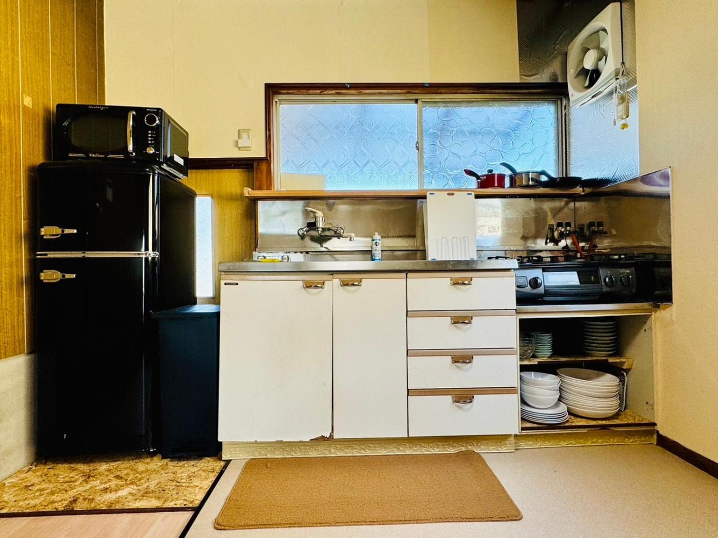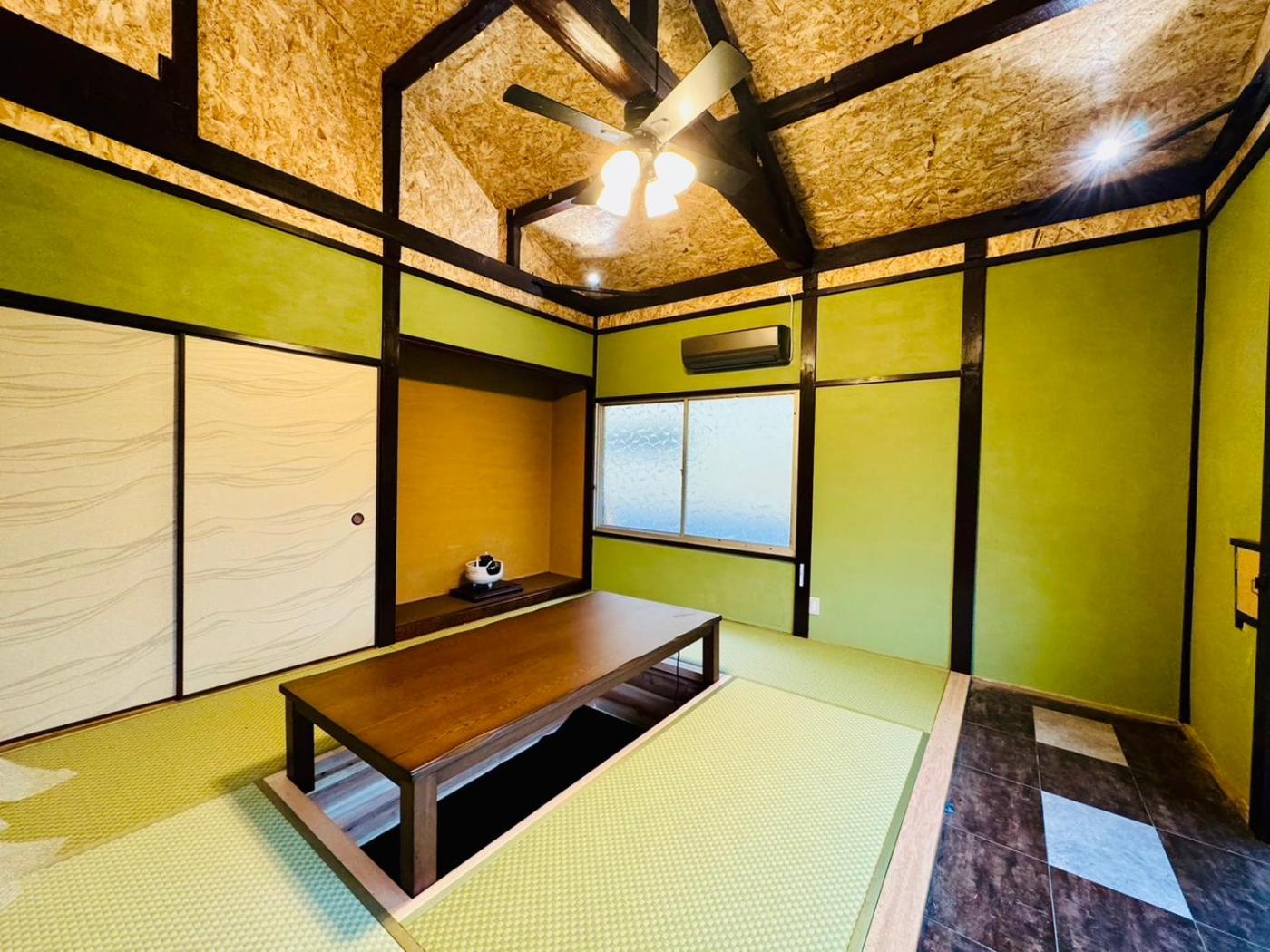 Three-Bedroom House. Featuring a private entrance, this air-conditioned holiday home consists of 1 living room, 3 separate bedrooms and 1 bathroom with a bath and a hairdryer. The holiday homes kitchen, which has a refrigerator and a microwave, is available for cooking and storing food. The holiday home features tatami floors, a seating area with a flat-screen TV, a washing machine, a dining area, as well as an electric kettle. The unit offers 3 beds and 4 futons.