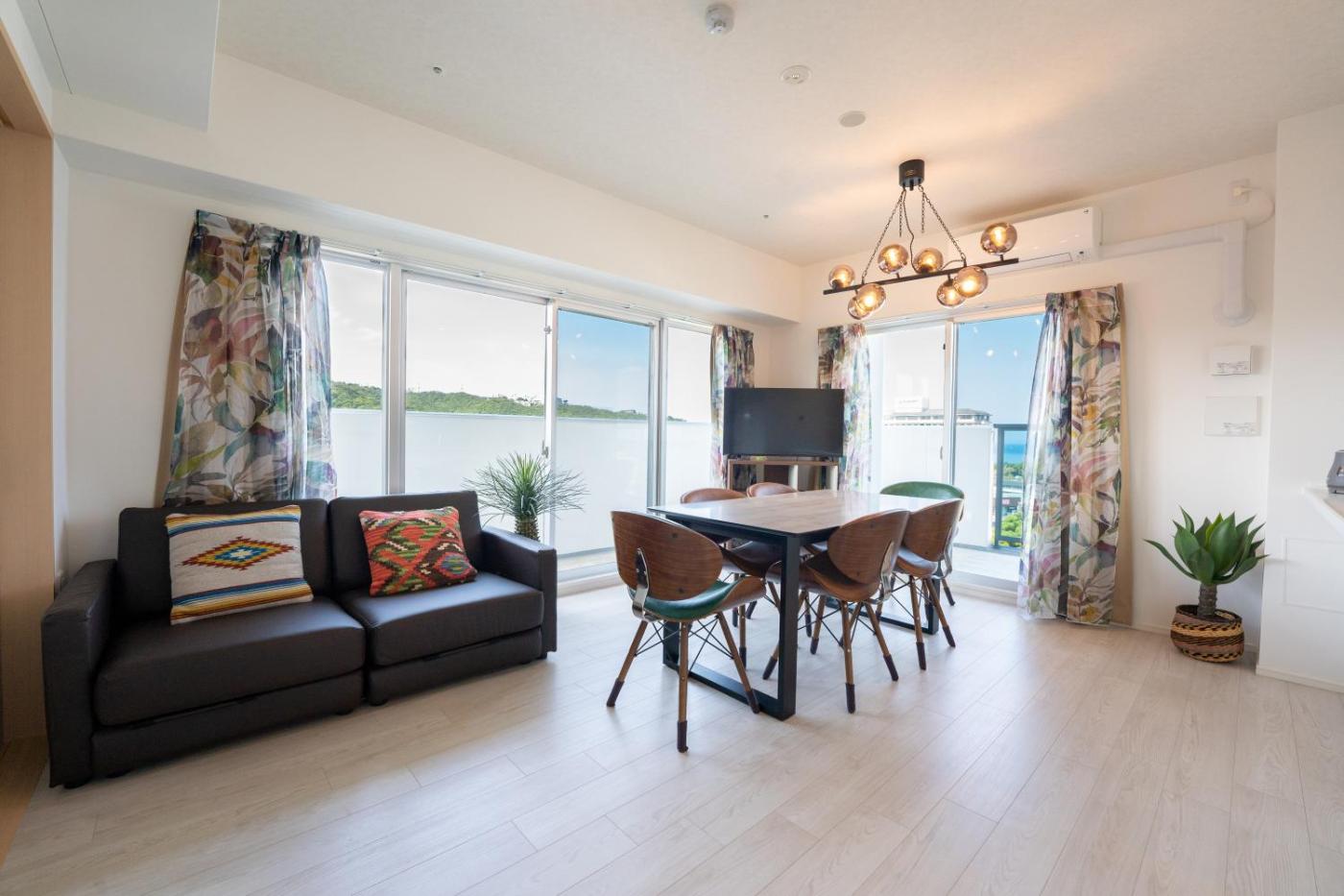 Three-Bedroom Suite. Boasting a private entrance, this air-conditioned suite features 1 living room, 3 separate bedrooms and 1 bathroom with a bath and a shower. Guests can make meals in the kitchen that features a stovetop, a refrigerator, kitchenware and a microwave. The spacious suite features a washing machine, tatami, soundproof walls, a flat-screen TV with streaming services, as well as sea views. The unit has 5 beds and 2 futons. ;