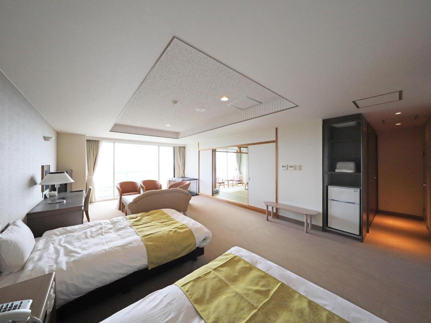 Japanese-Western ​style Room with Ocean View. The spacious family room offers air conditioning, tatami, a balcony with sea views as well as a private bathroom boasting a bath. The unit has 2 beds and 4 futons. ;
