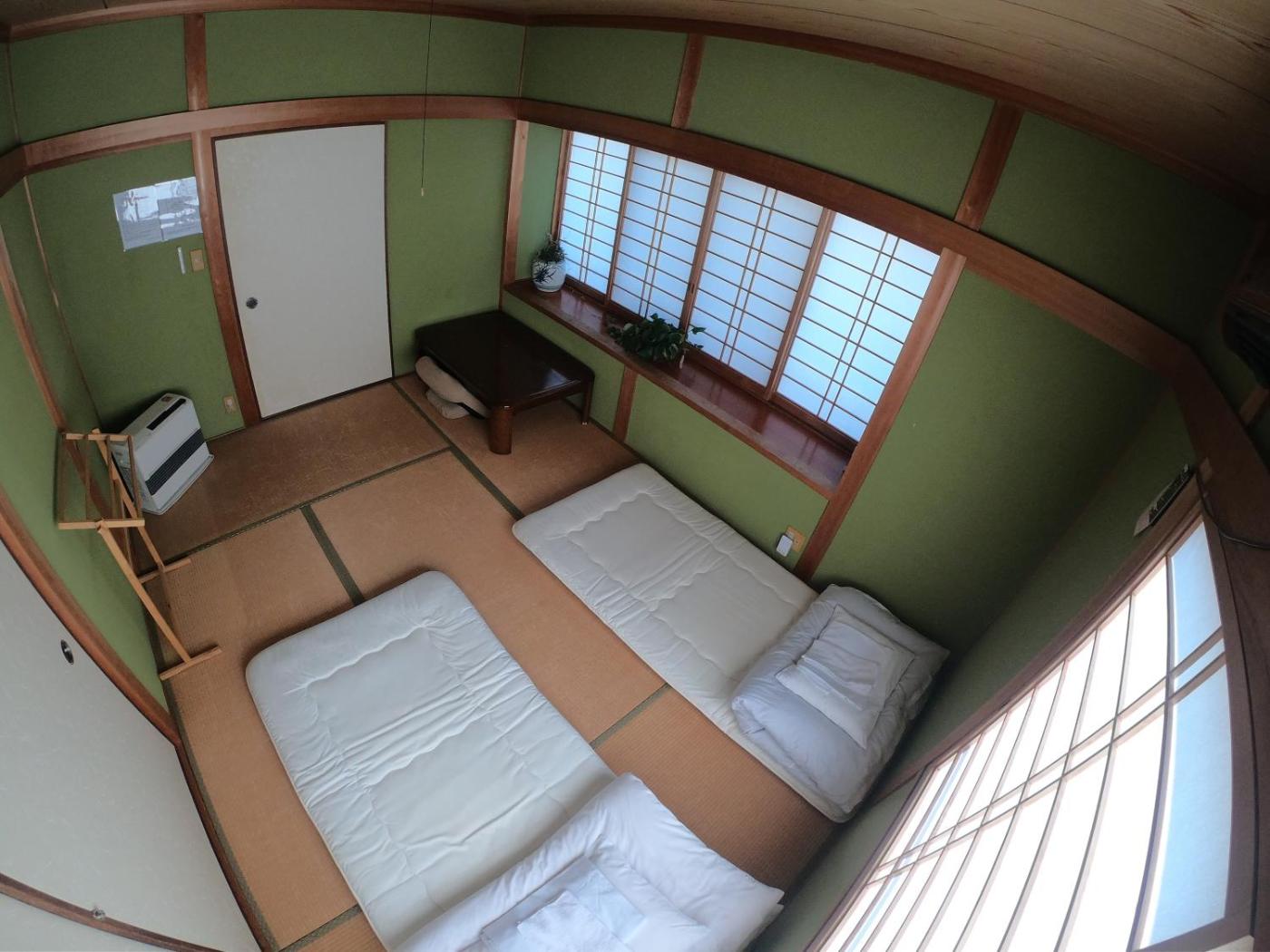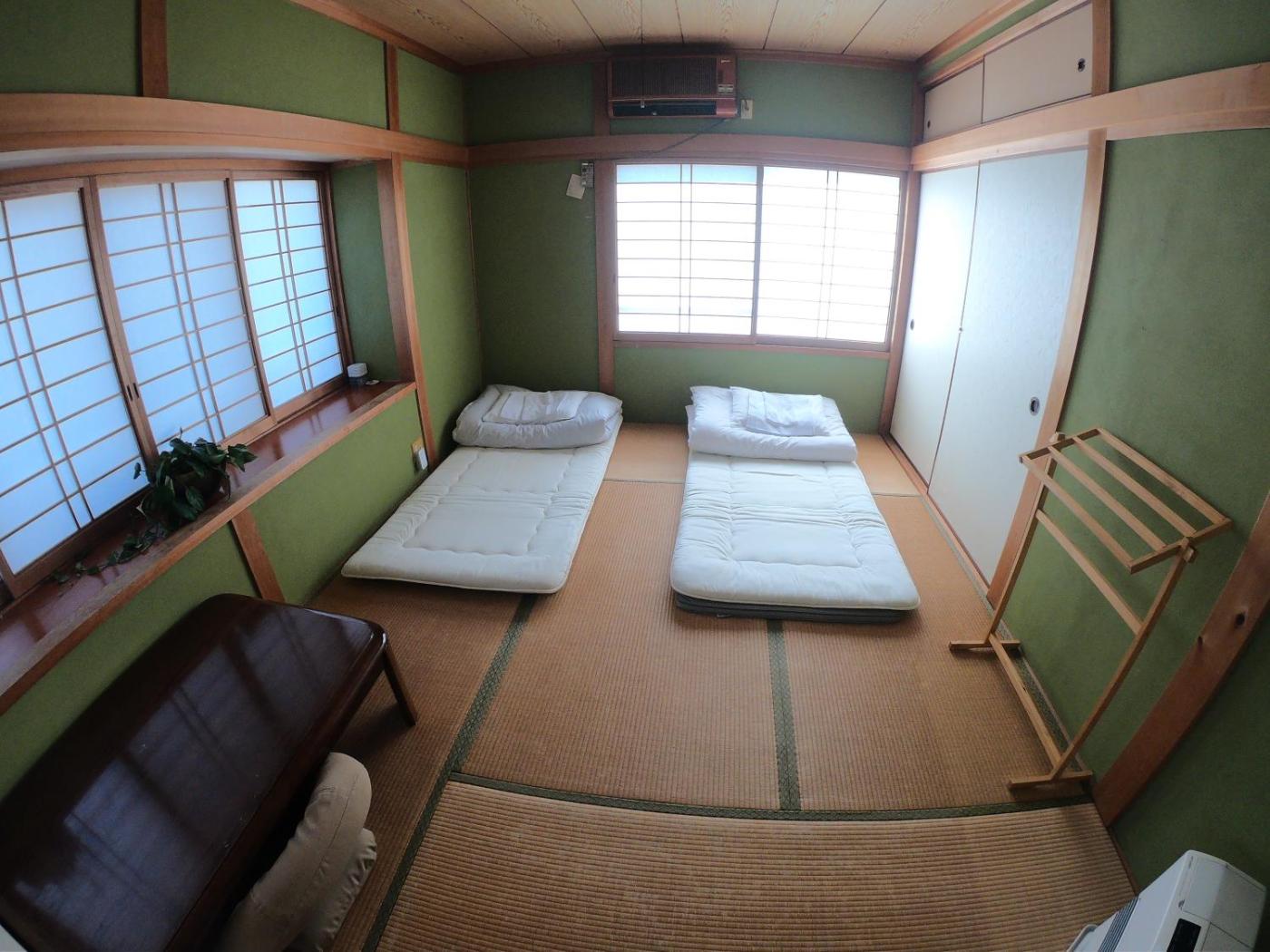 Standard Twin Room with Shared Bathroom. The twin room offers air conditioning, tatami, as well as a shared bathroom boasting a bath and a shower. The unit has 2 futons.