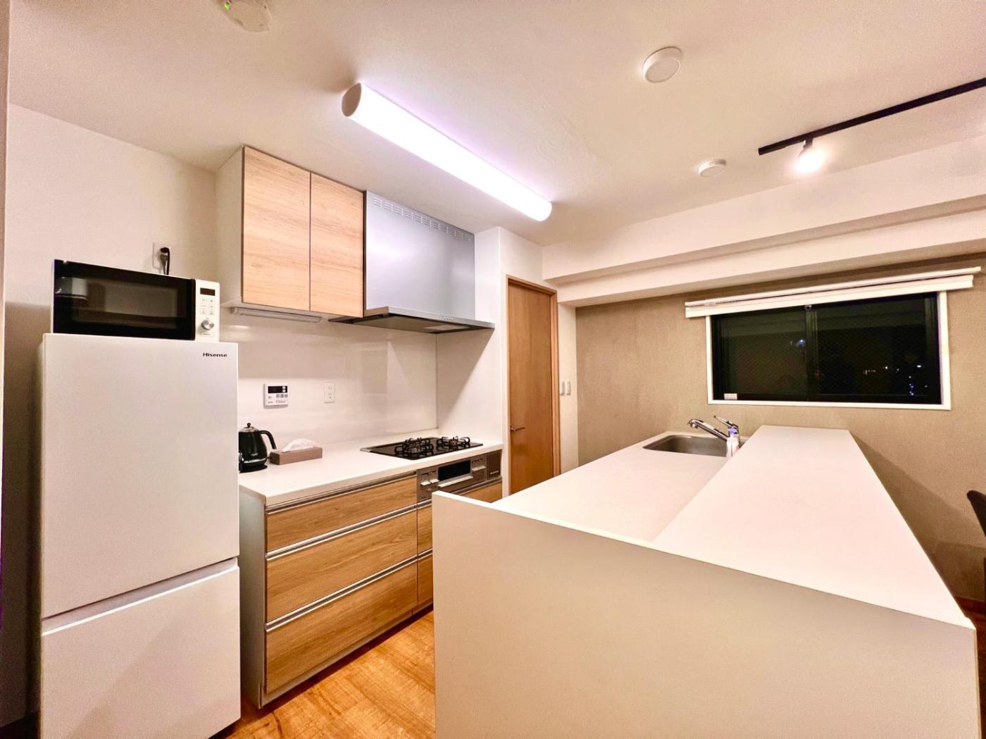 Two-Bedroom Apartment. This apartment features a hot tub. This spacious apartment features a kitchen, a seating area, 2 separate bedrooms and 1 bathroom with a bath and a shower. Guests can make meals in the kitchen that has a stovetop, a refrigerator, a microwave and an electric kettle. The air-conditioned apartment features a flat-screen TV with streaming services, a washing machine, tatami, soundproof walls as well as city views. The unit has 8 beds.