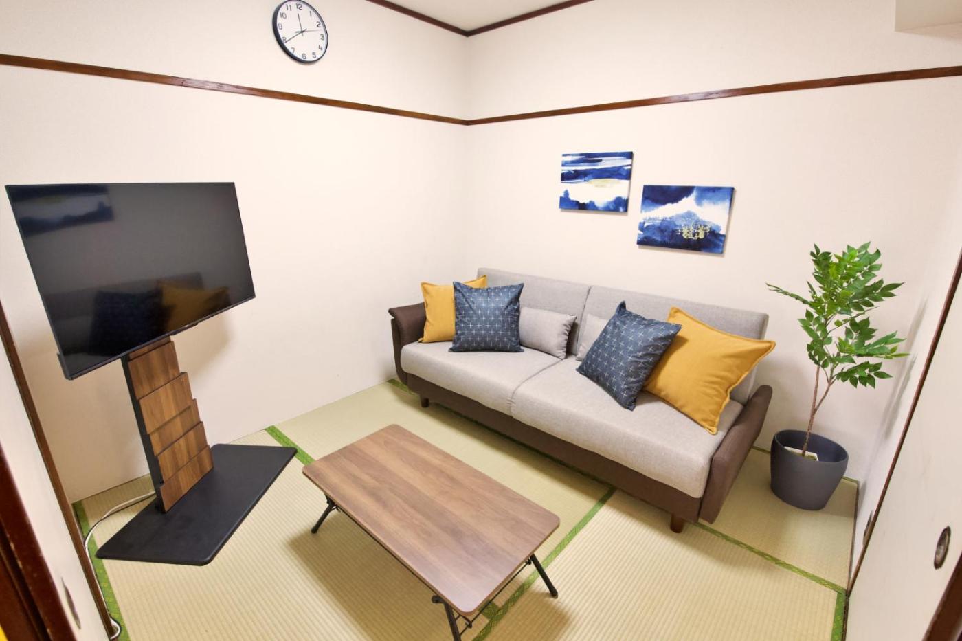 Two-Bedroom Standard Apartment. This apartment includes 1 living room, 2 separate bedrooms and 1 bathroom with a bath and free toiletries. In the fully equipped kitchen, guests will find a stovetop, a refrigerator, kitchenware and a microwave. This apartment is air-conditioned and has a flat-screen TV, a washing machine, tatami and a dining area. The unit has 4 beds.