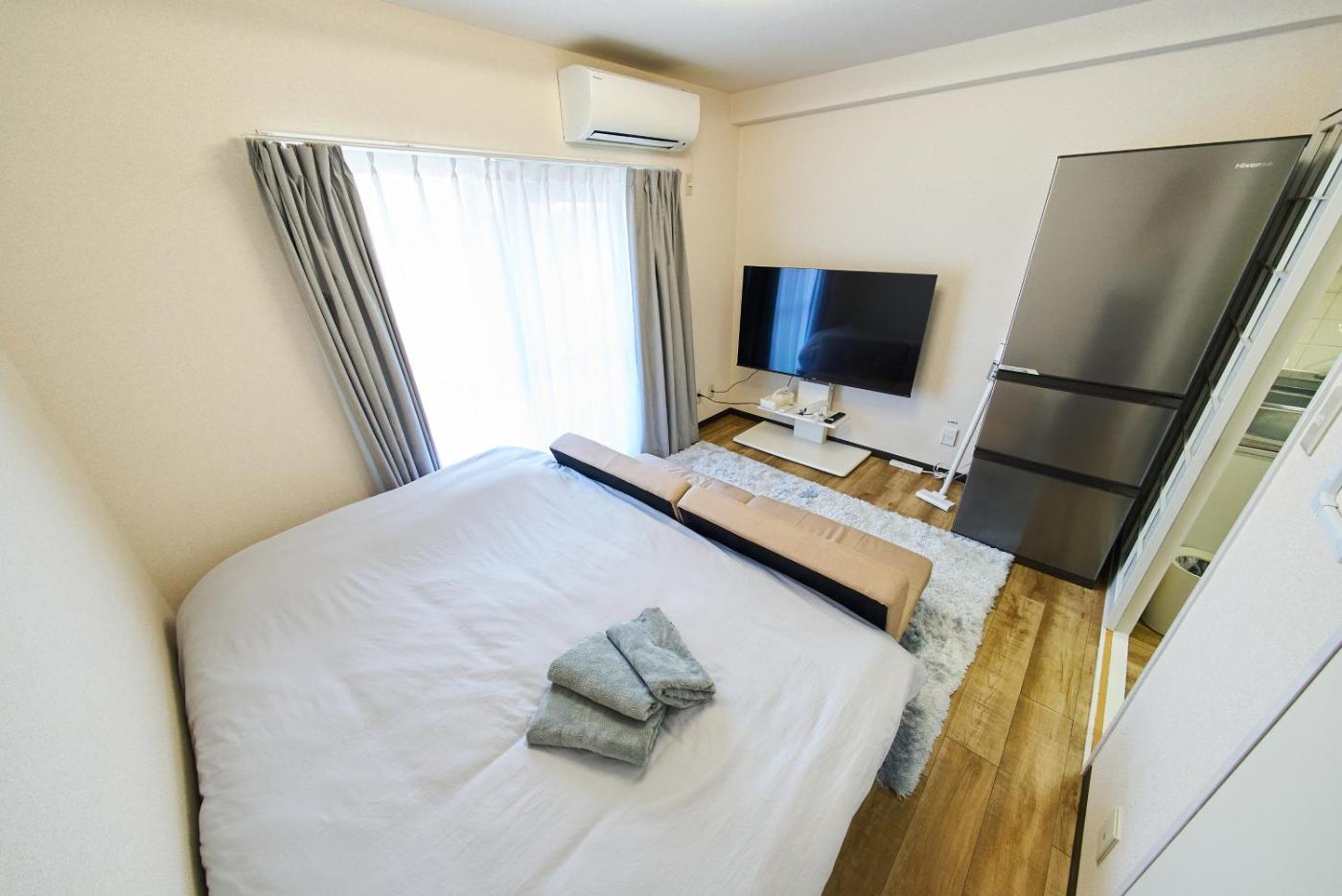 One-Bedroom Apartment. This air-conditioned apartment is comprised of 1 living room, 1 separate bedroom and 1 bathroom with a bath. The apartments kitchen, which features kitchenware, is available for cooking and storing food. The apartment offers a flat-screen TV, a washing machine, an electric kettle and heating. The unit offers 2 beds.