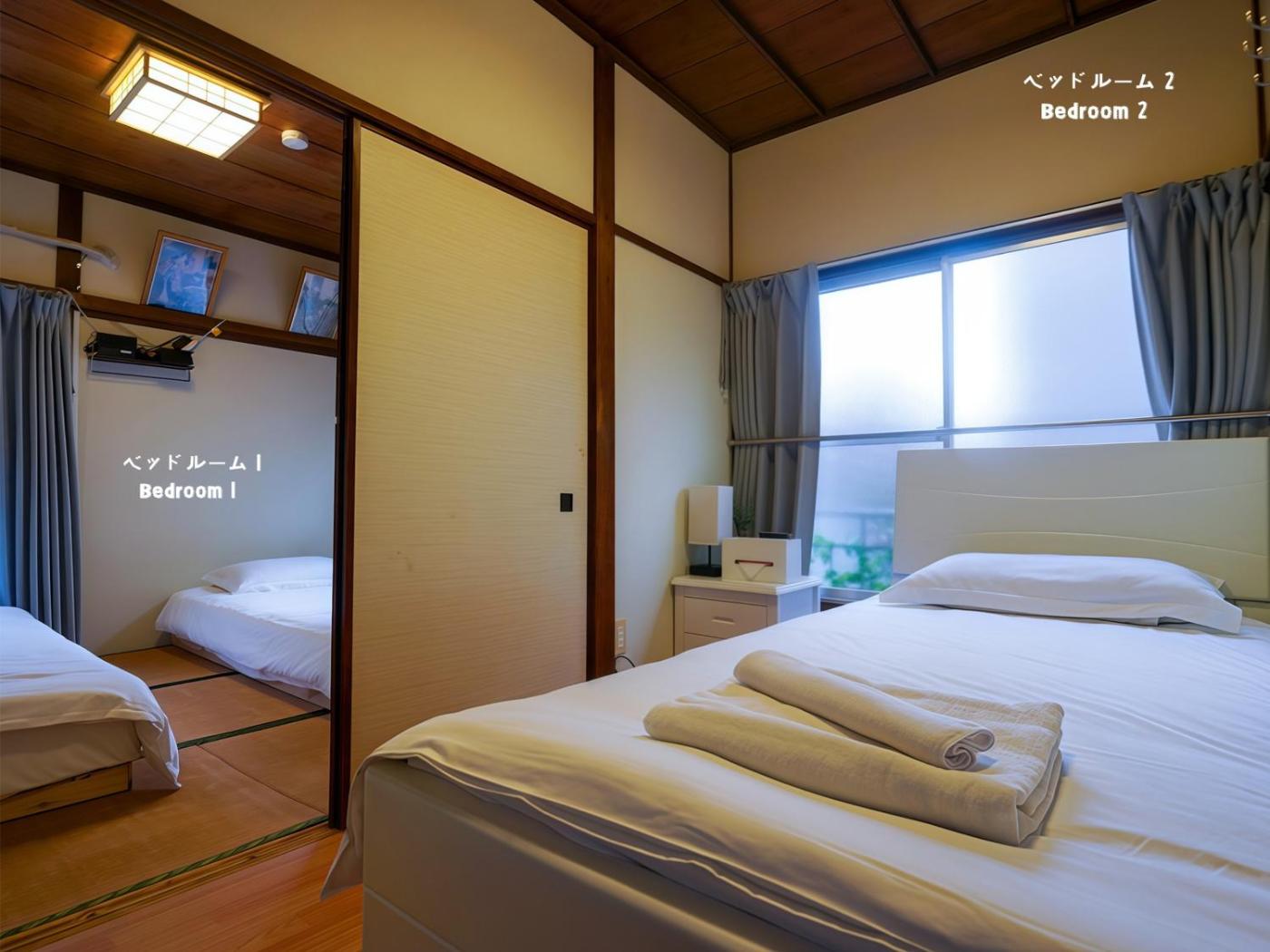 Three-Bedroom Villa. This villas special feature is the hot tub. The air-conditioned villa features 3 bedrooms and 1 bathroom with a walk-in shower and a bath. The well-equipped kitchen has a stovetop, a refrigerator, kitchenware and a microwave. The villa provides a washing machine, tatami, a wardrobe as well as a balcony with mountain views. The unit offers 3 beds and 4 futons.